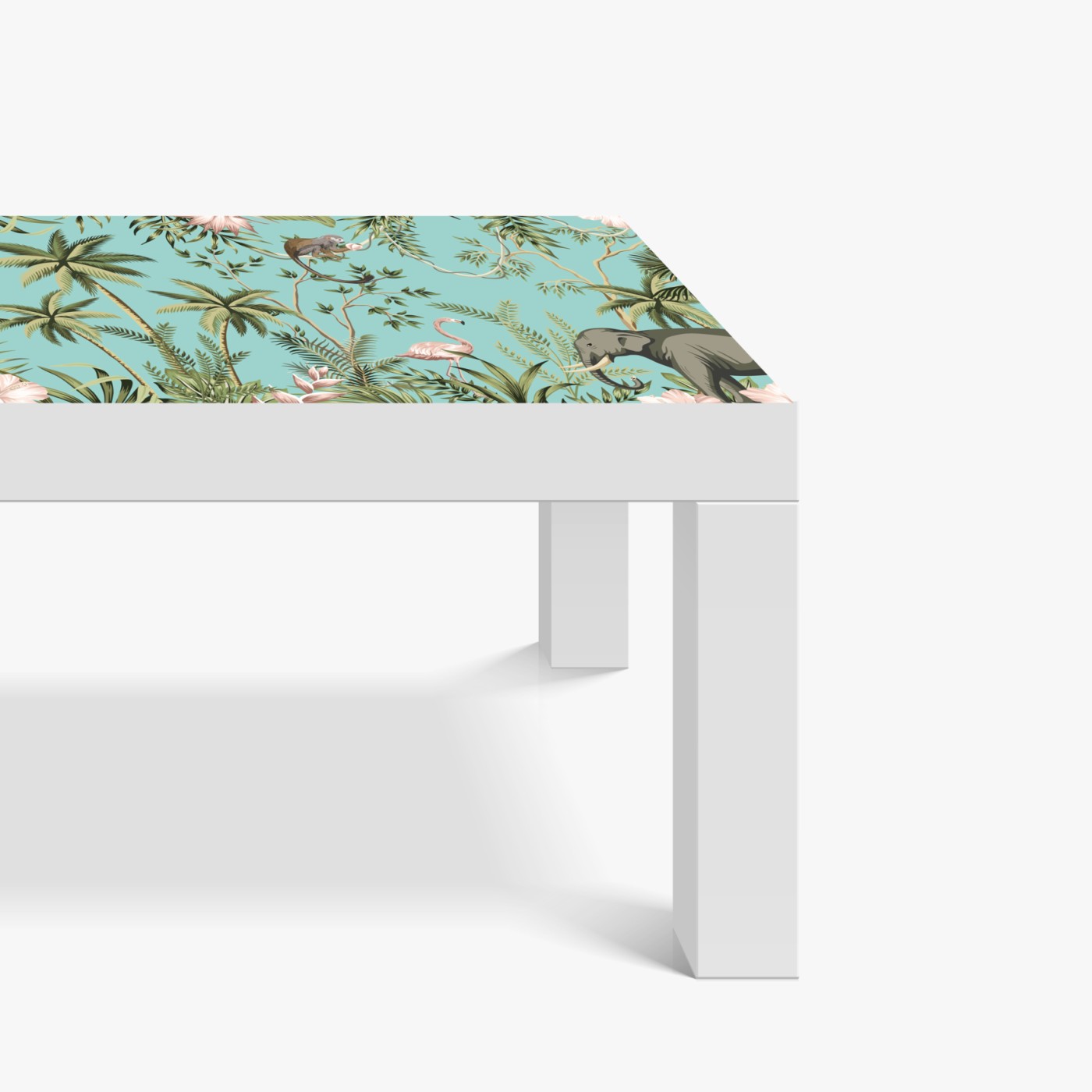 Naklejka na biurko i stół Tropikalna scena dżungli ze słoniem i flamingiem