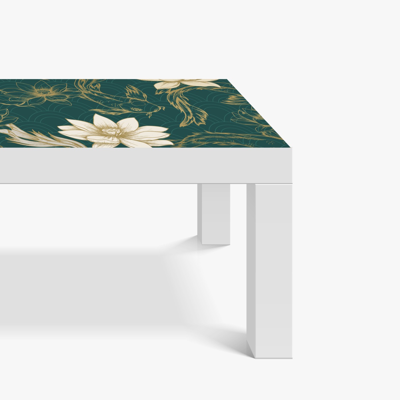 Naklejka na biurko i stół Orientalny wzór koi i lotosów w turkusie i złocie