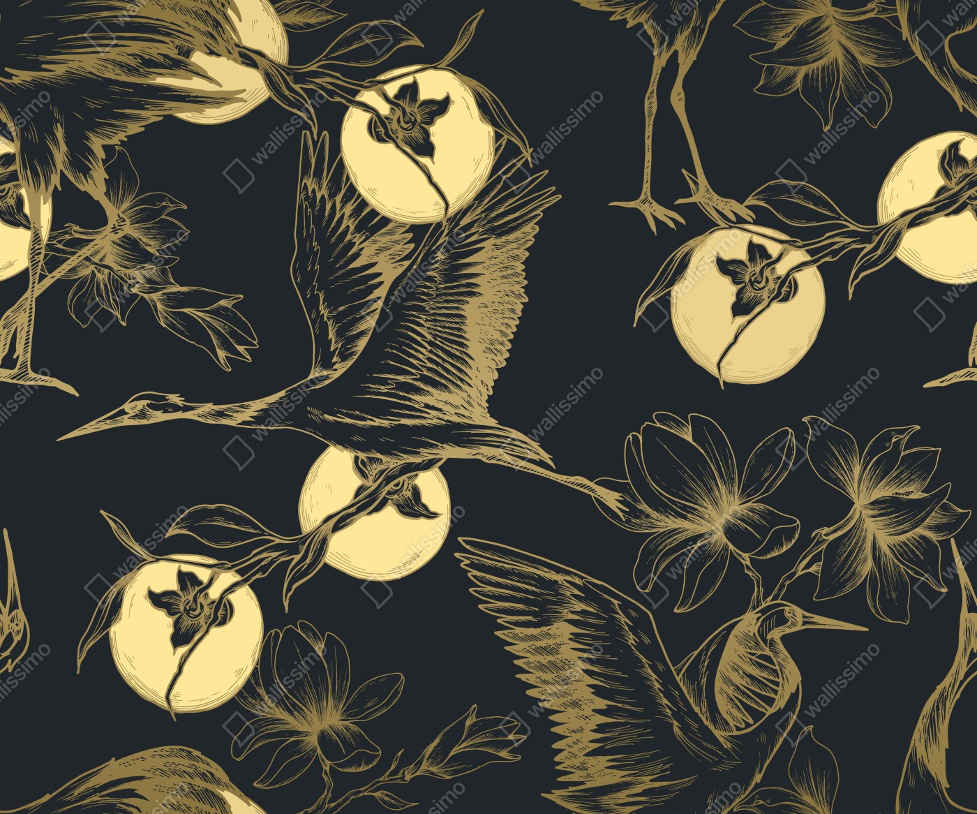Naklejka na biurko i stół Złote żurawie i księżycowy wzór