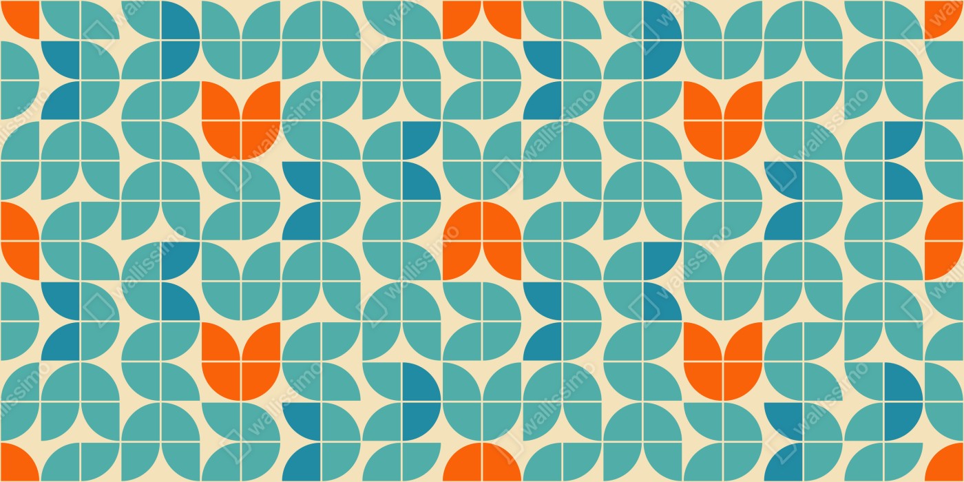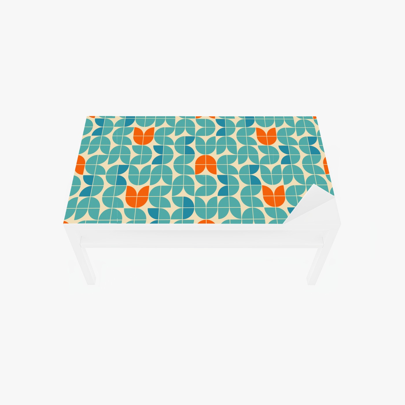 Naklejka na biurko i stół Retro geometryczny wzór kafelkowy w turkusie i pomarańczy