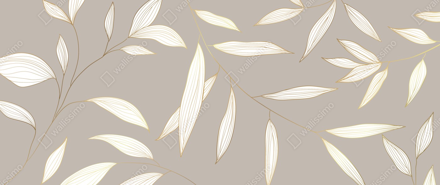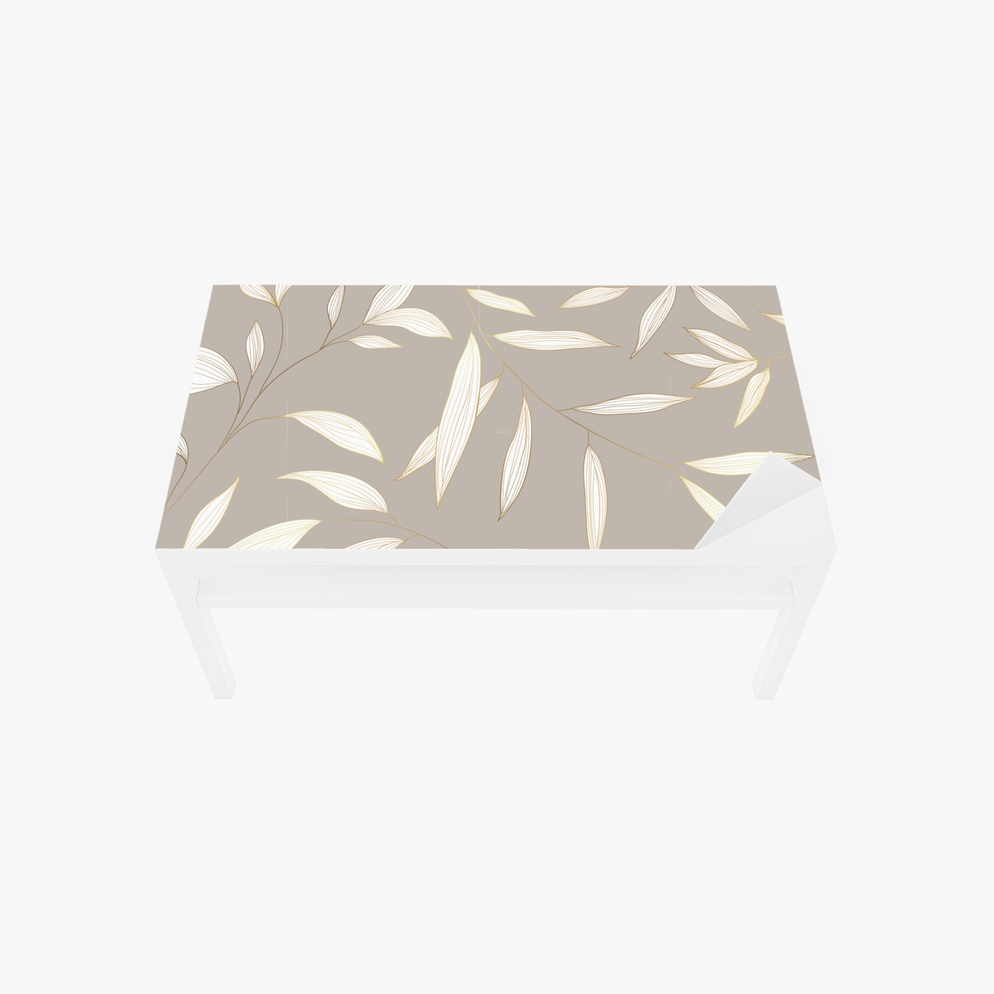 Naklejka na biurko i stół Delikatne liście z złotym obrysem na beżowym tle