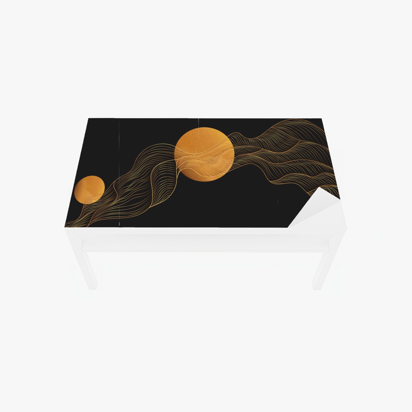 Naklejka na biurko i stół Złote fale na czarnym tle — abstrakcyjna kompozycja