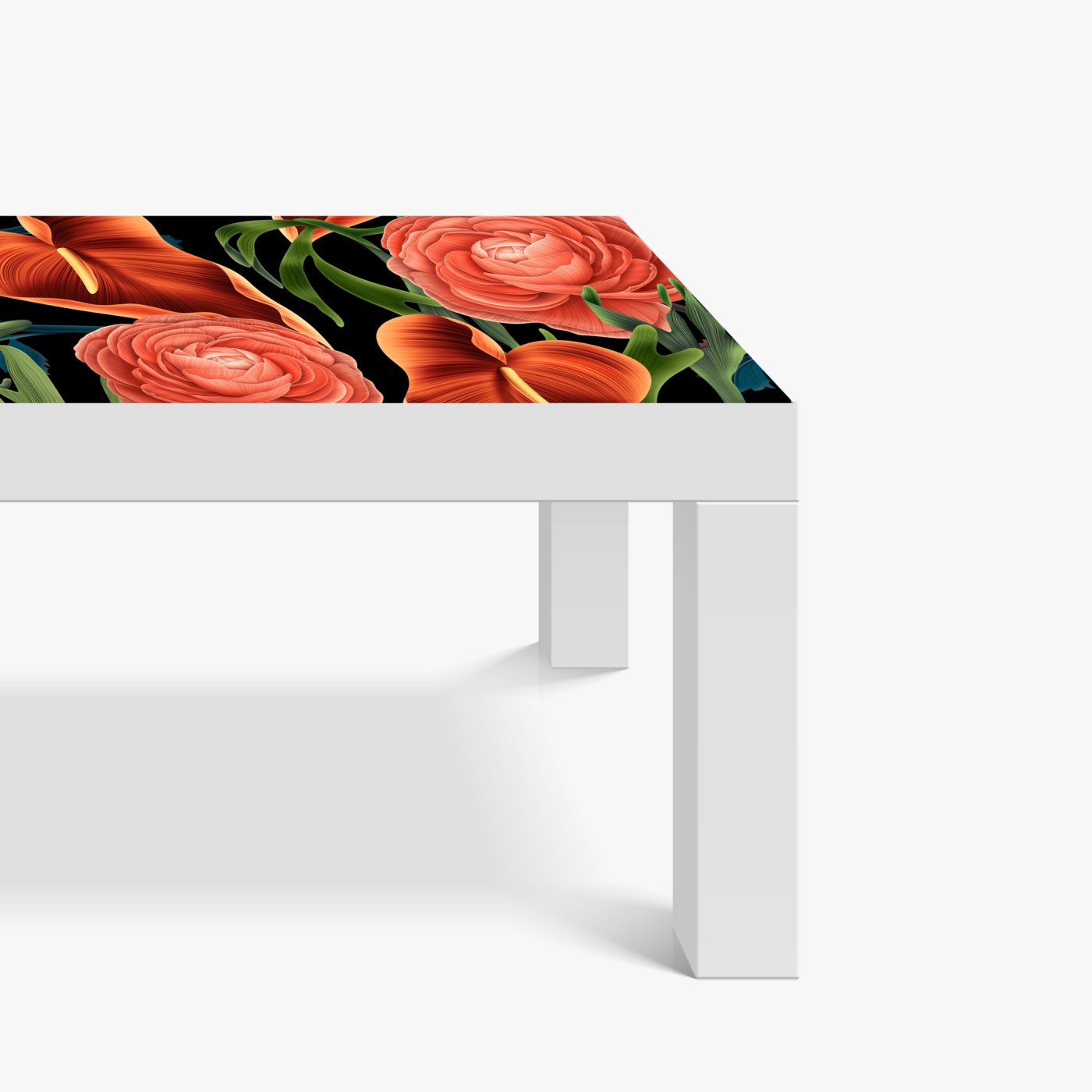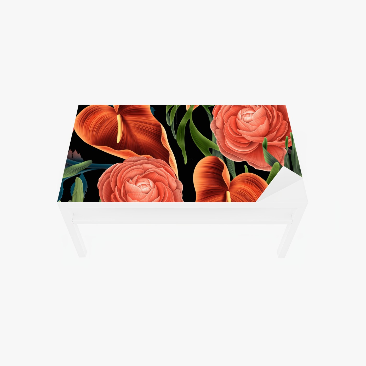 Naklejka na biurko i stół Intensywny koralowy wzór kwiatowy na czarnym tle
