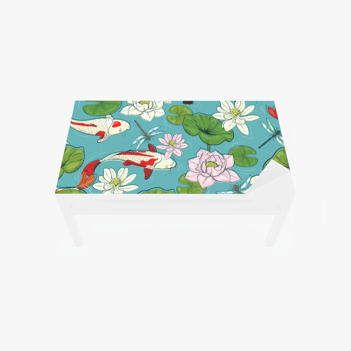 Naklejka na biurko i stół Koi, lilie wodne i ważki na błękitnym stawie