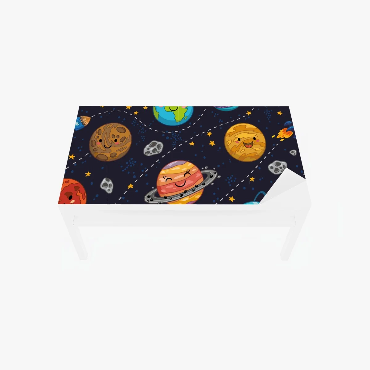 Naklejka na biurko i stół Uśmiechnięte planety na zabawnym tle kosmicznym