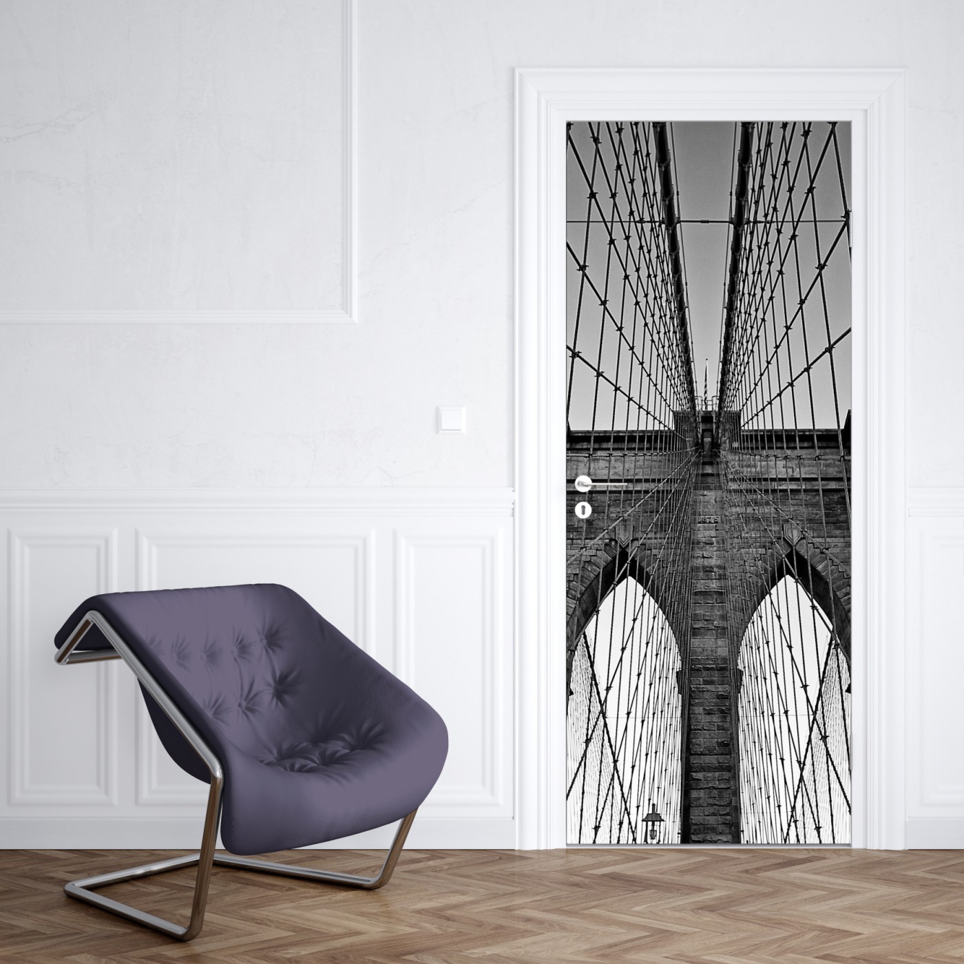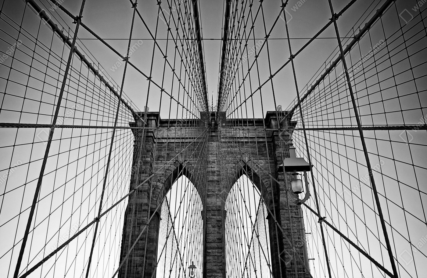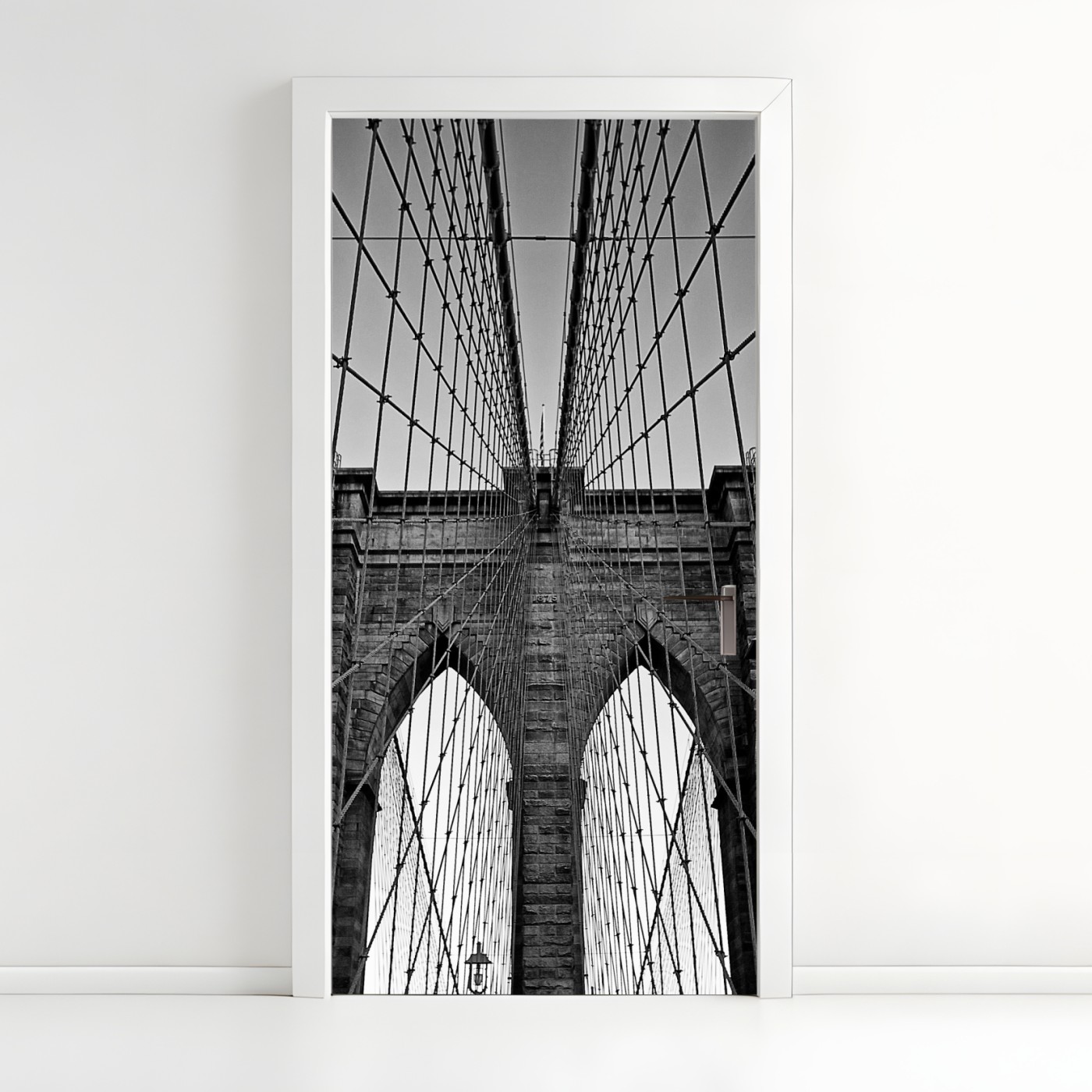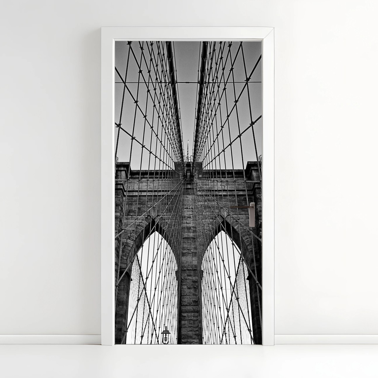Naklejka na drzwi Symetryczny most wiszący w czerni i bieli