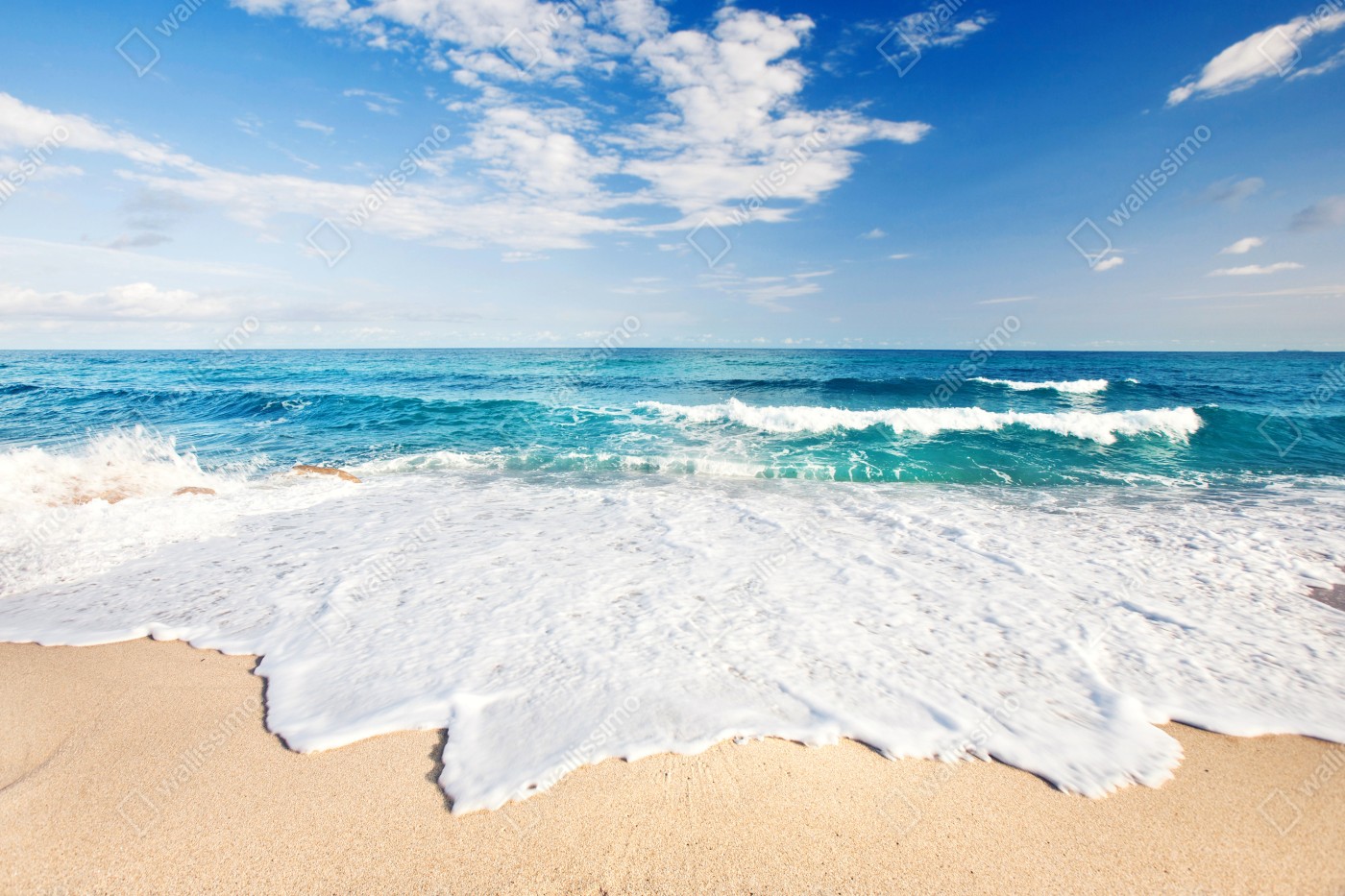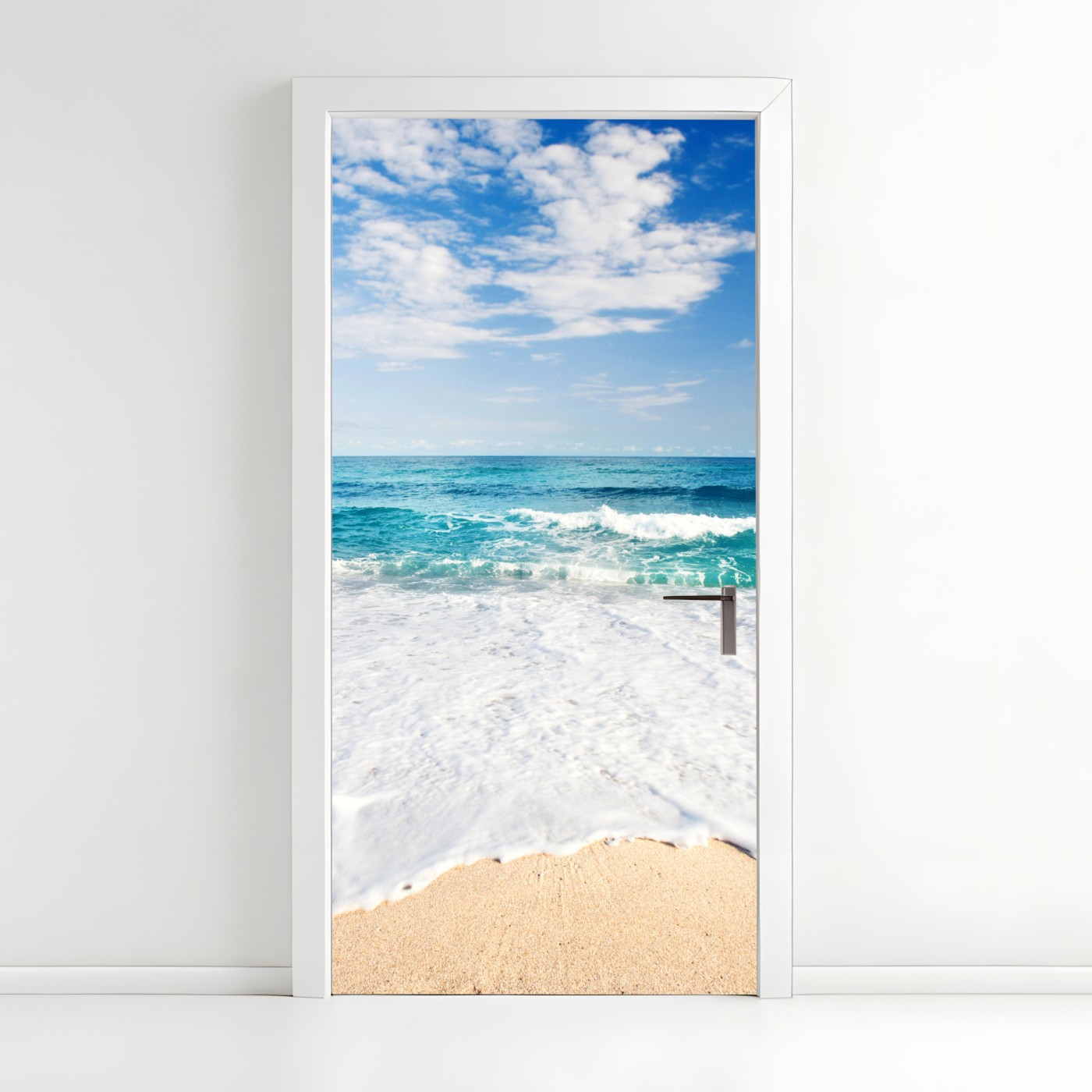 Naklejka na drzwi Turkusowe fale na piaszczystej plaży