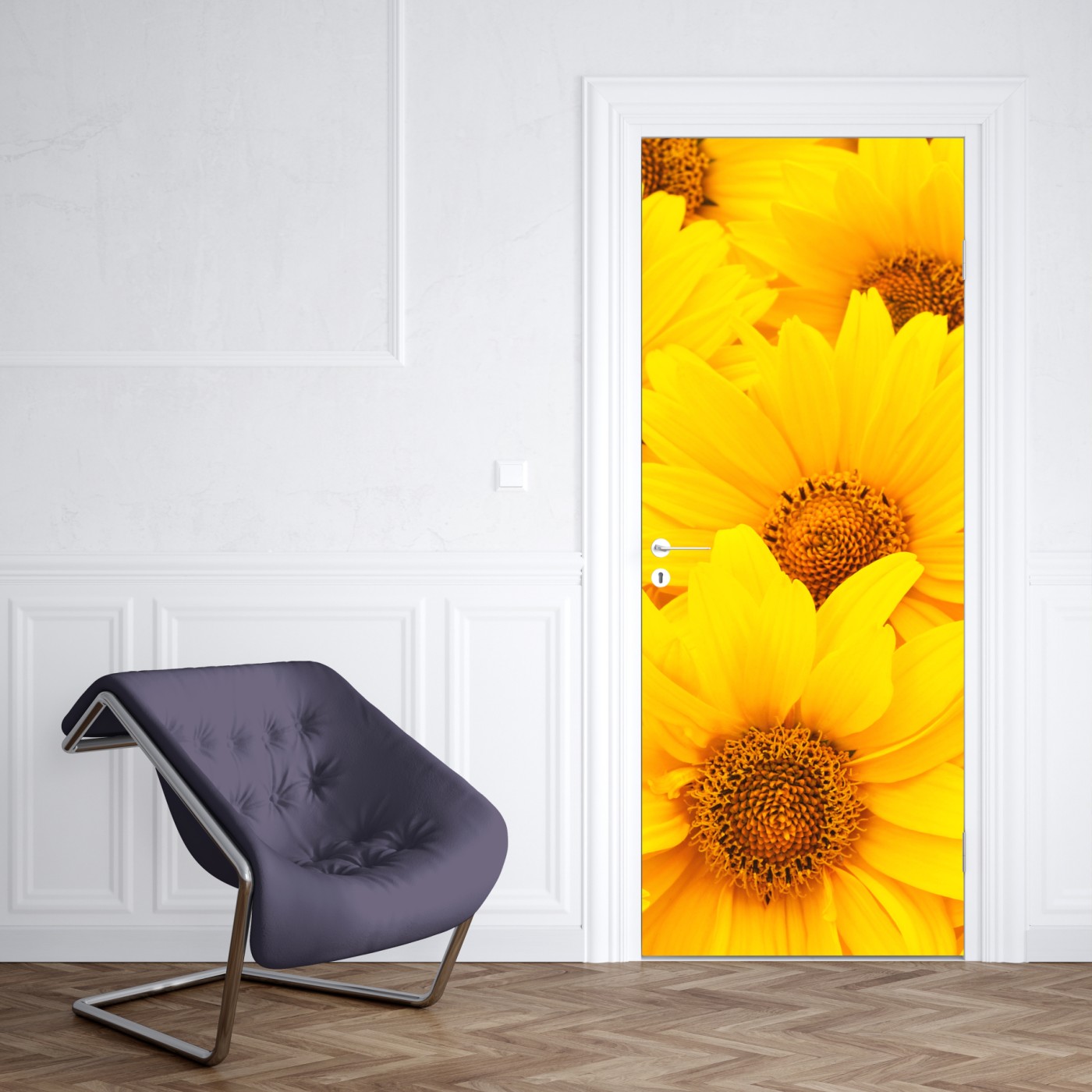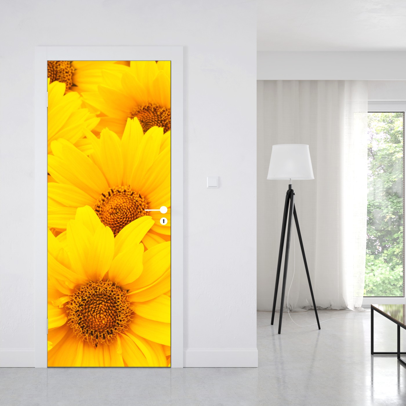 Naklejka na drzwi Intensywne żółte słoneczniki w zbliżeniu