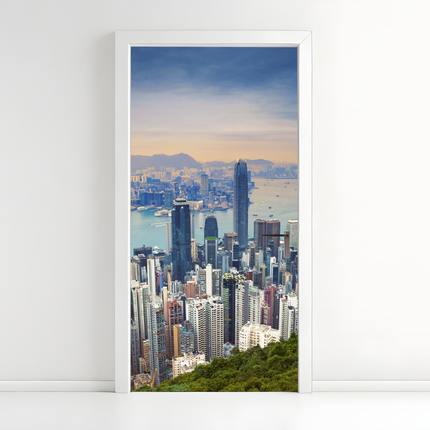Naklejka na drzwi Hong Kong panorama miasta o zmierzchu