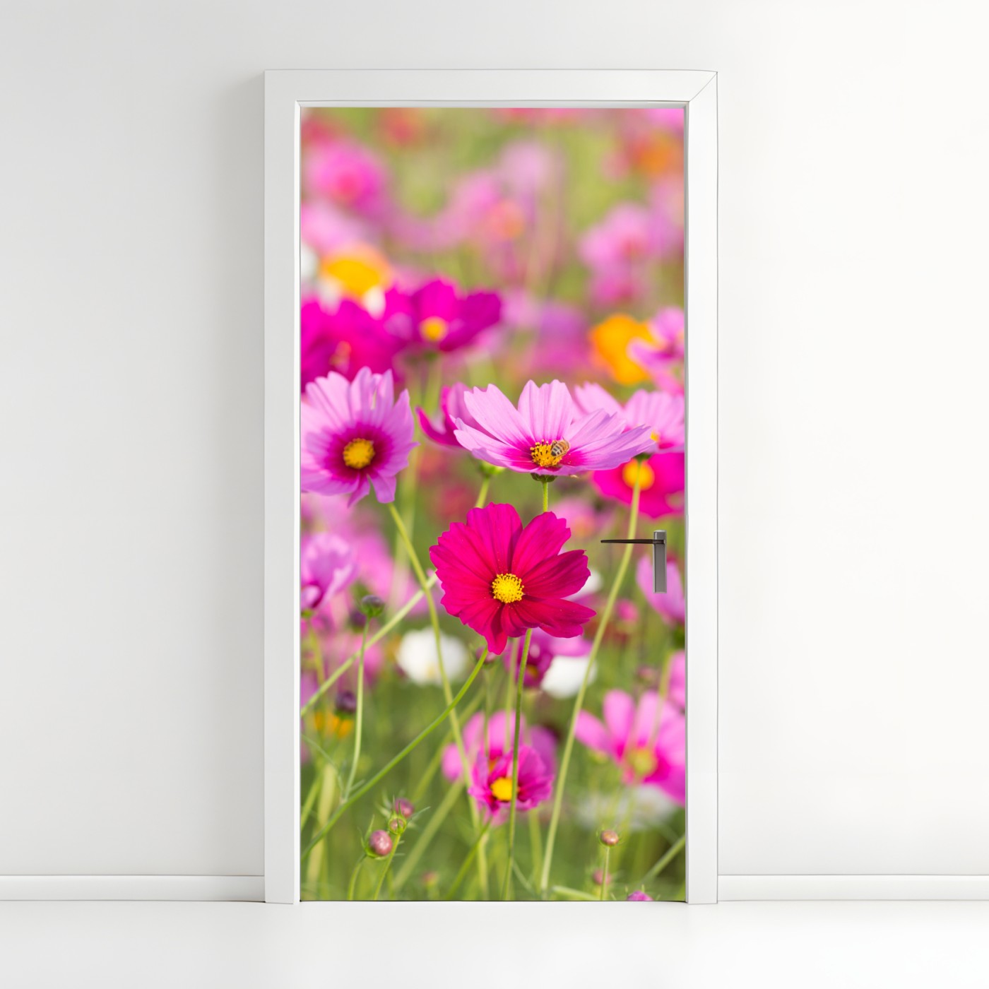 Naklejka na drzwi Różowa łąka kosmosów w rozkwicie