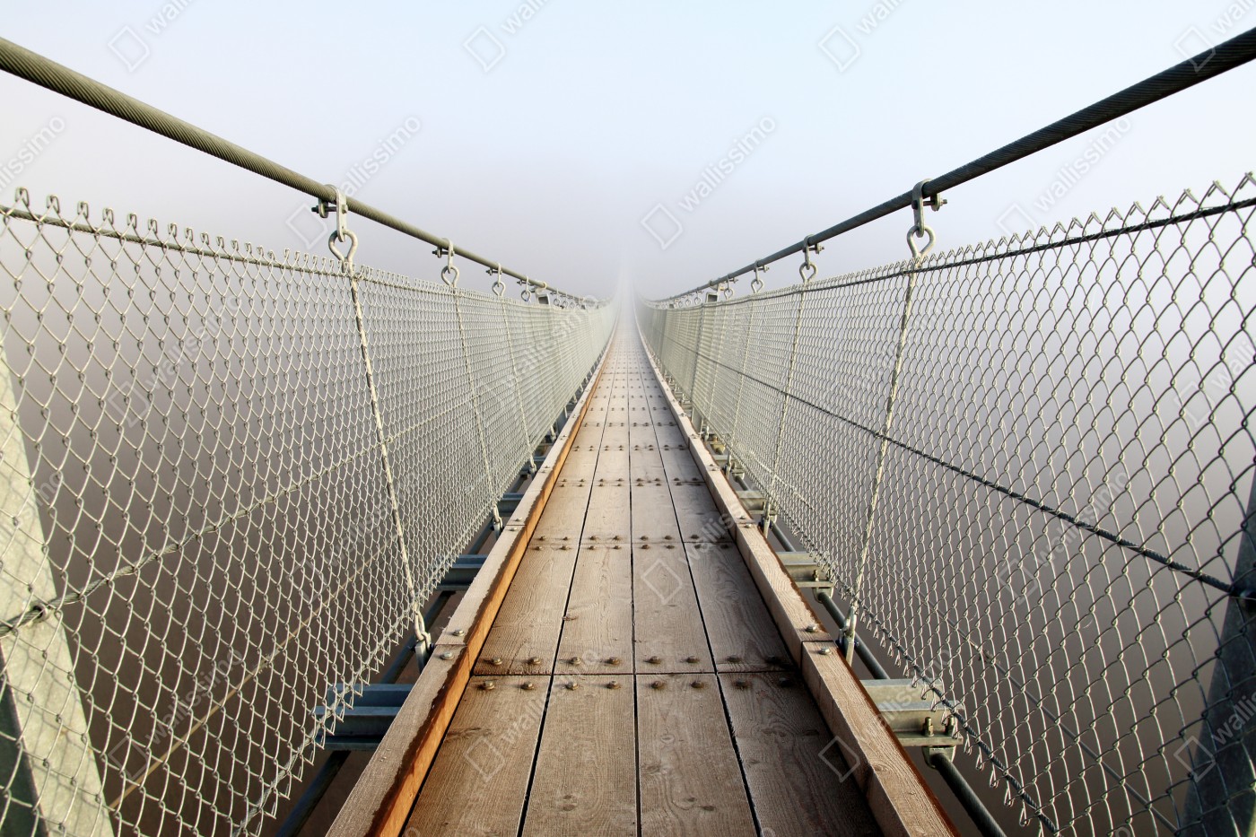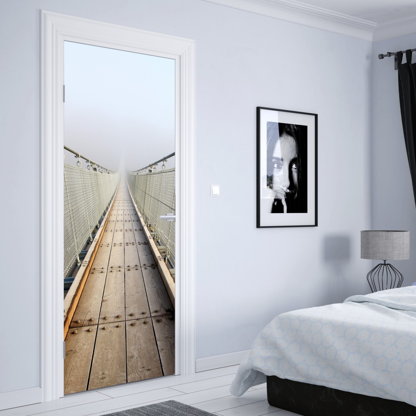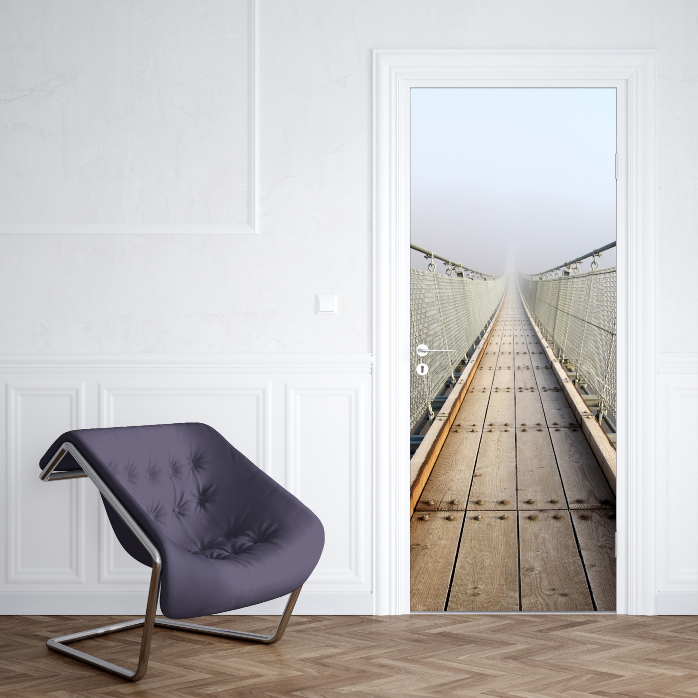 Naklejka na drzwi Mglisty most wiszący prowadzący w mgłę