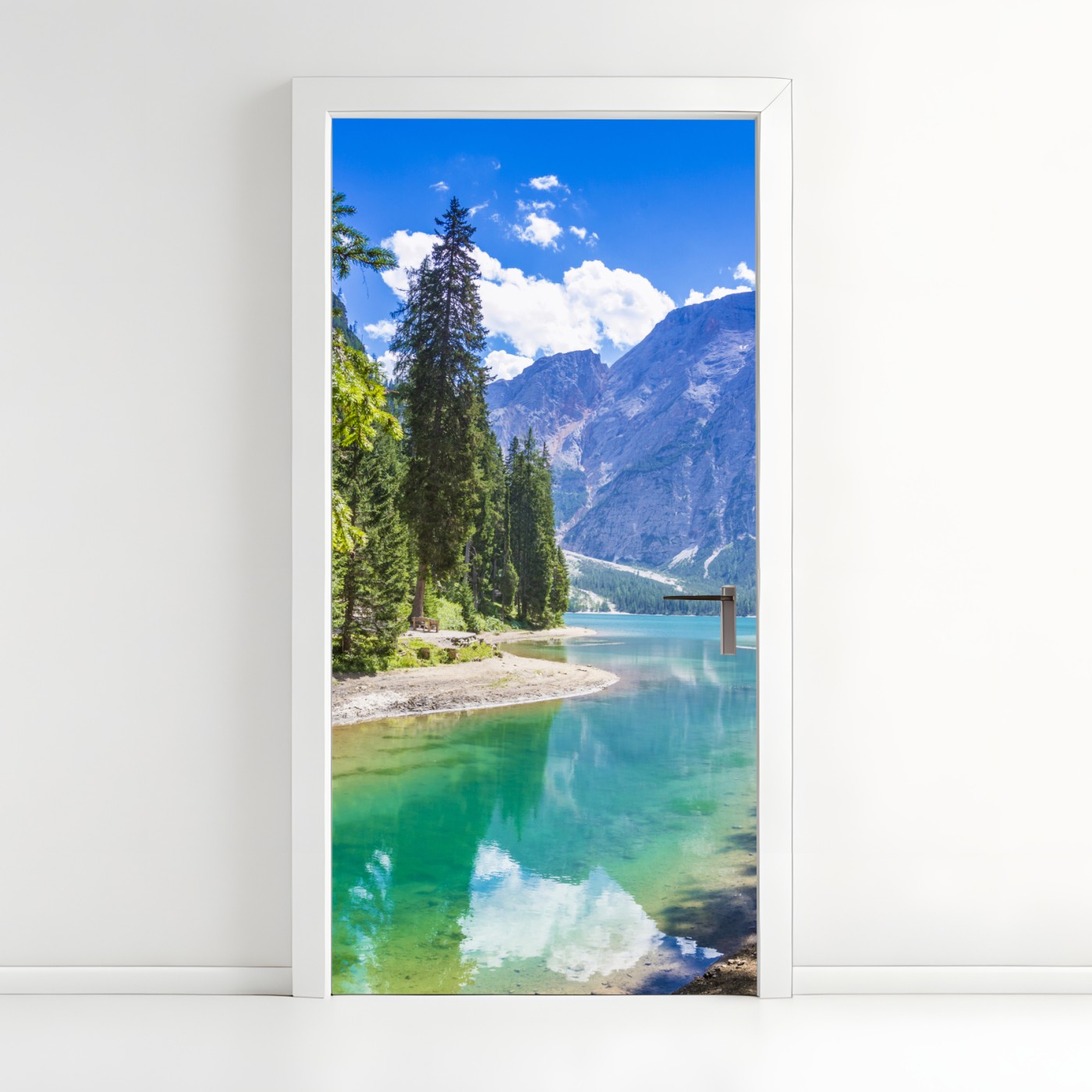 Naklejka na drzwi Pragser Wildsee turkusowe górskie jezioro
