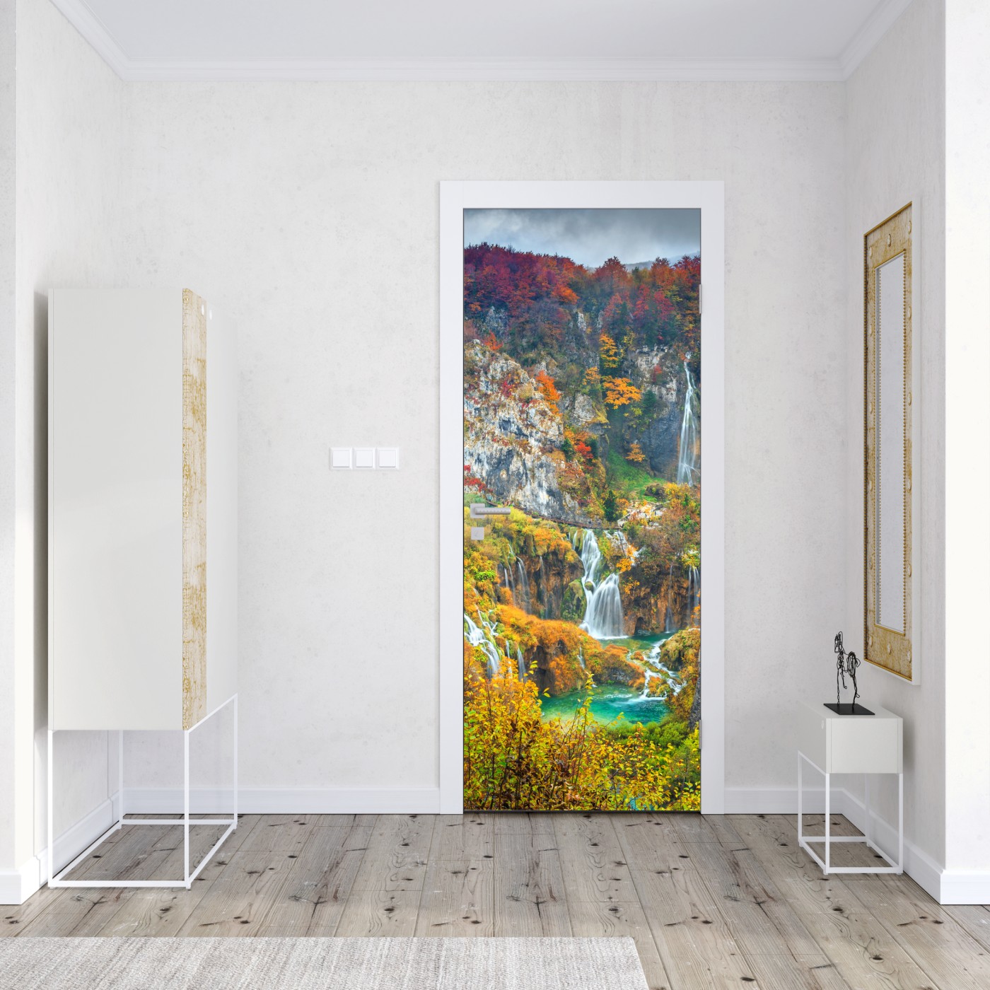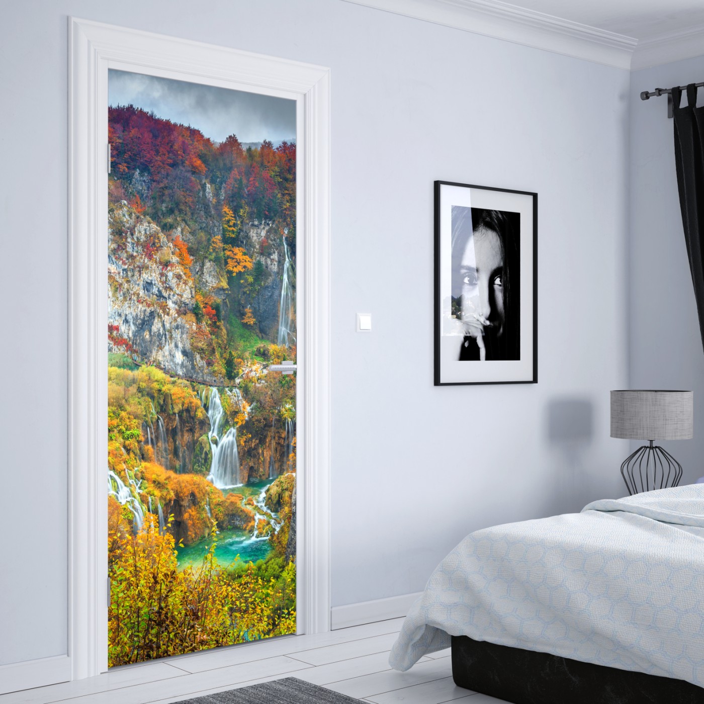 Naklejka na drzwi Jesienne wodospady w malowniczym lesie