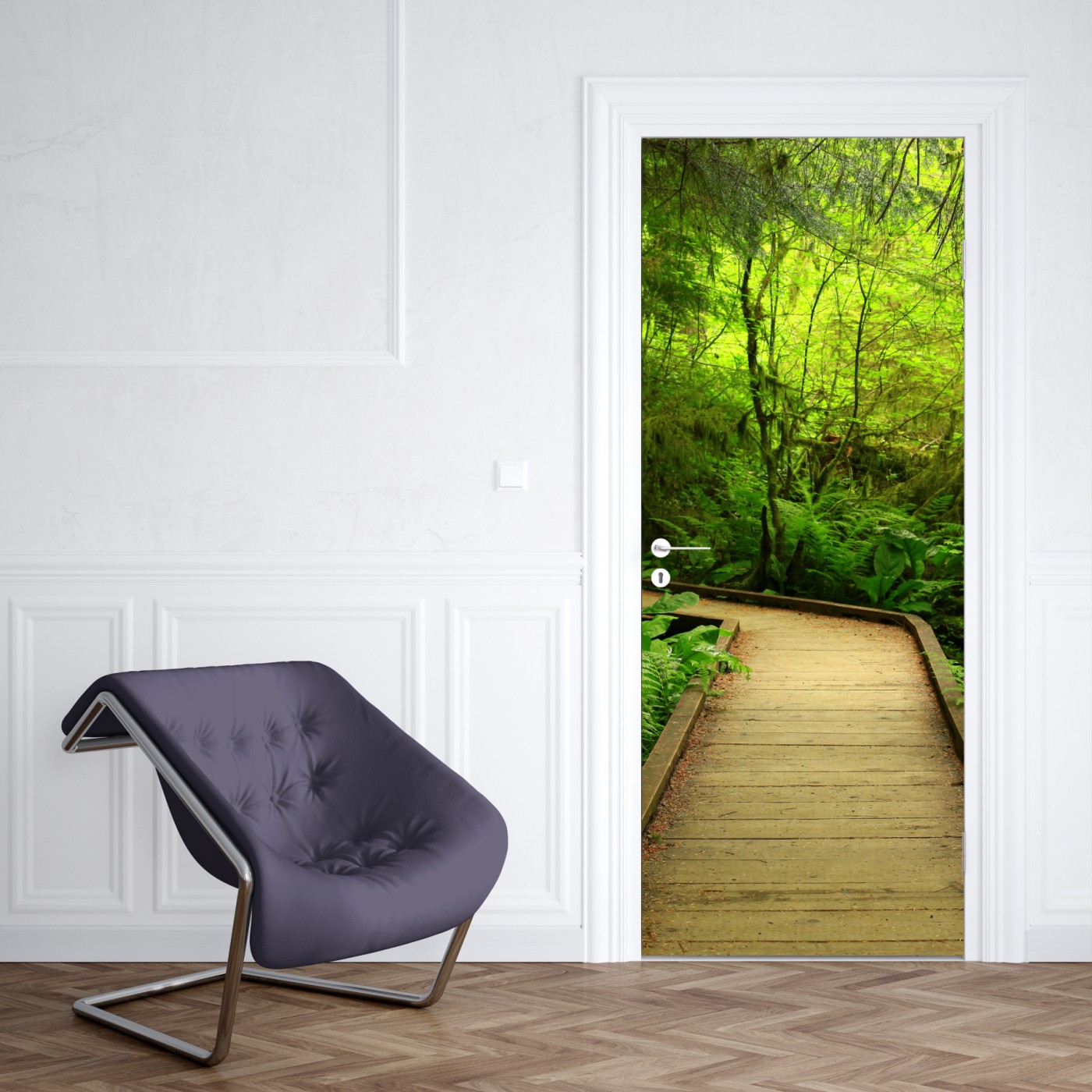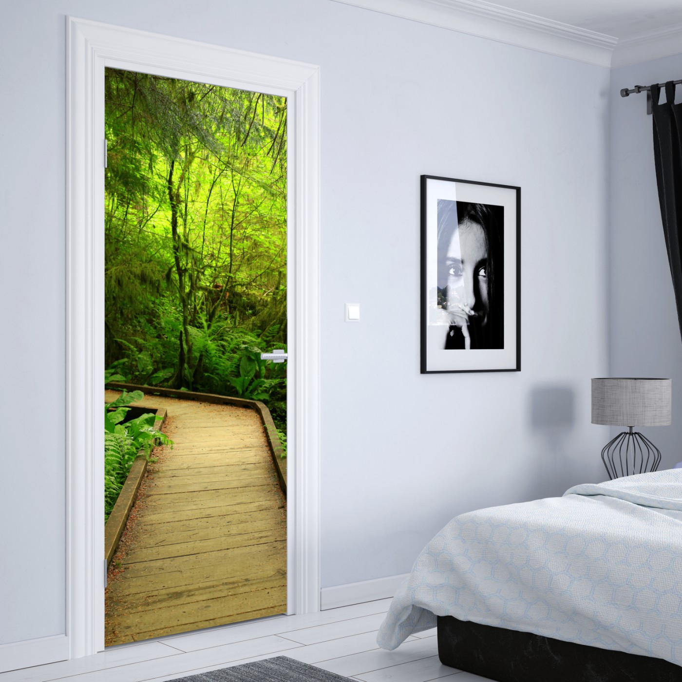 Naklejka na drzwi Spokojna zielona kładka leśna