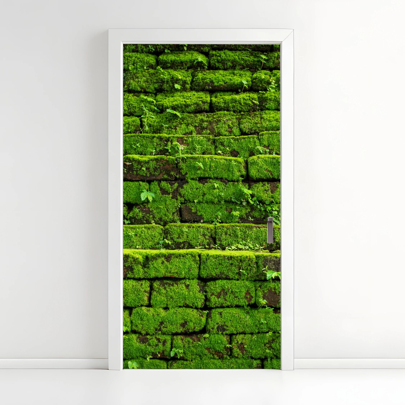 Naklejka na drzwi Ściana z mchem na ceglanej strukturze