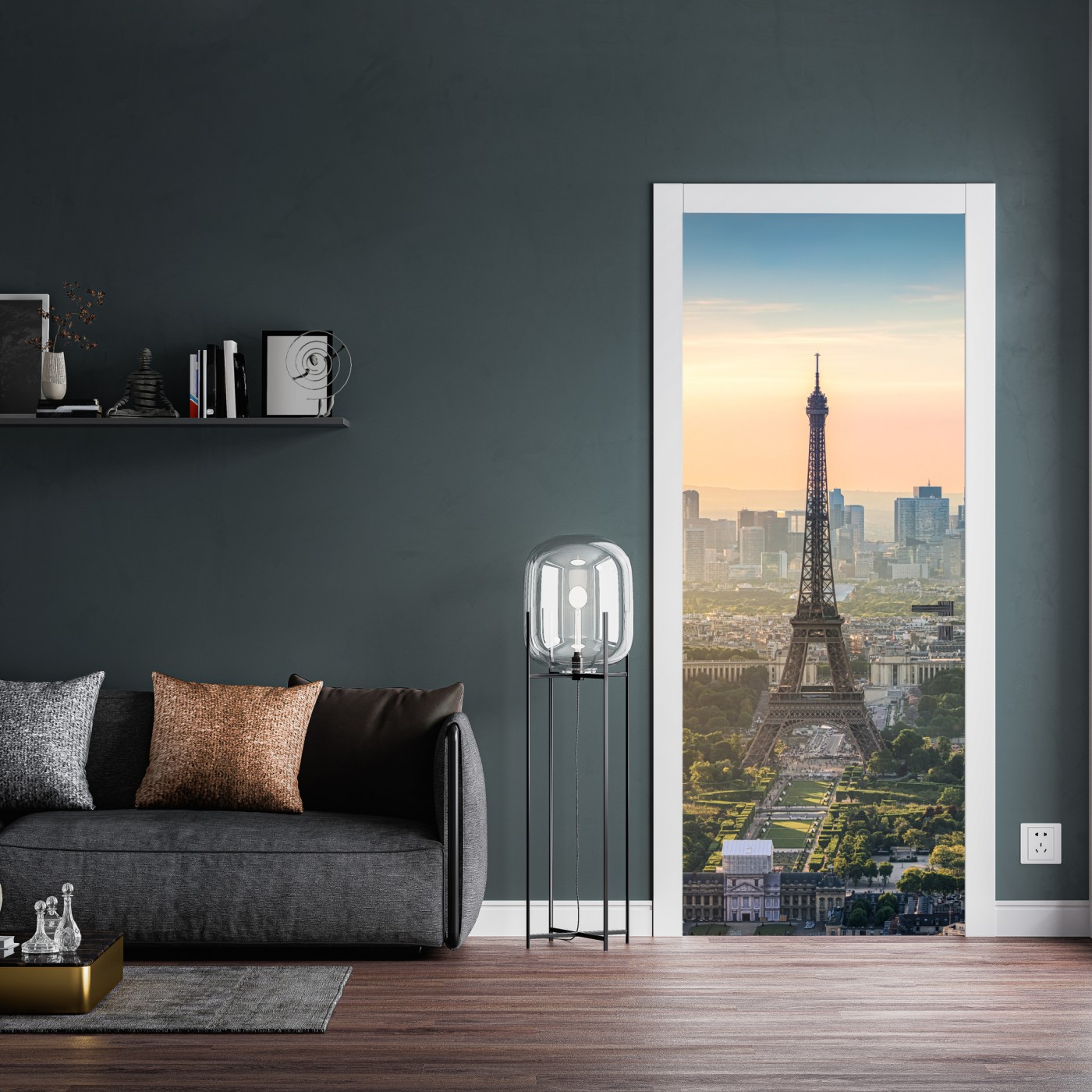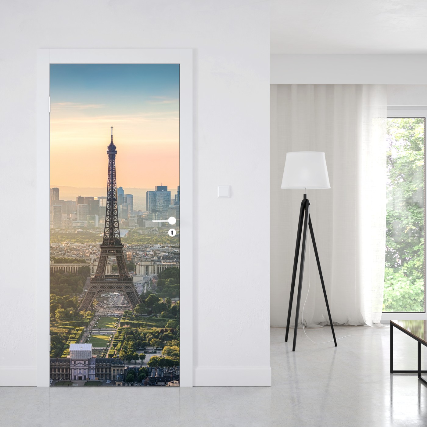 Naklejka na drzwi Paryż panorama o zachodzie słońca z Wieżą Eiffla