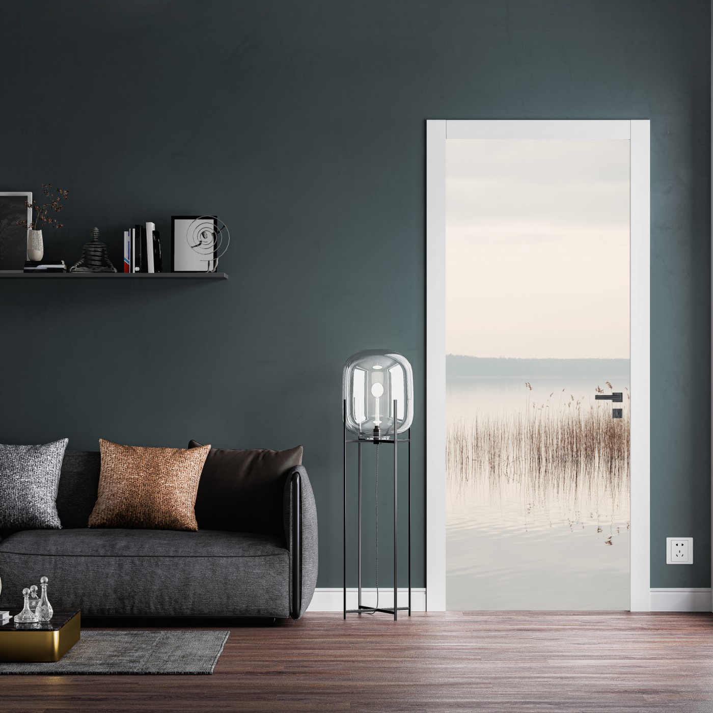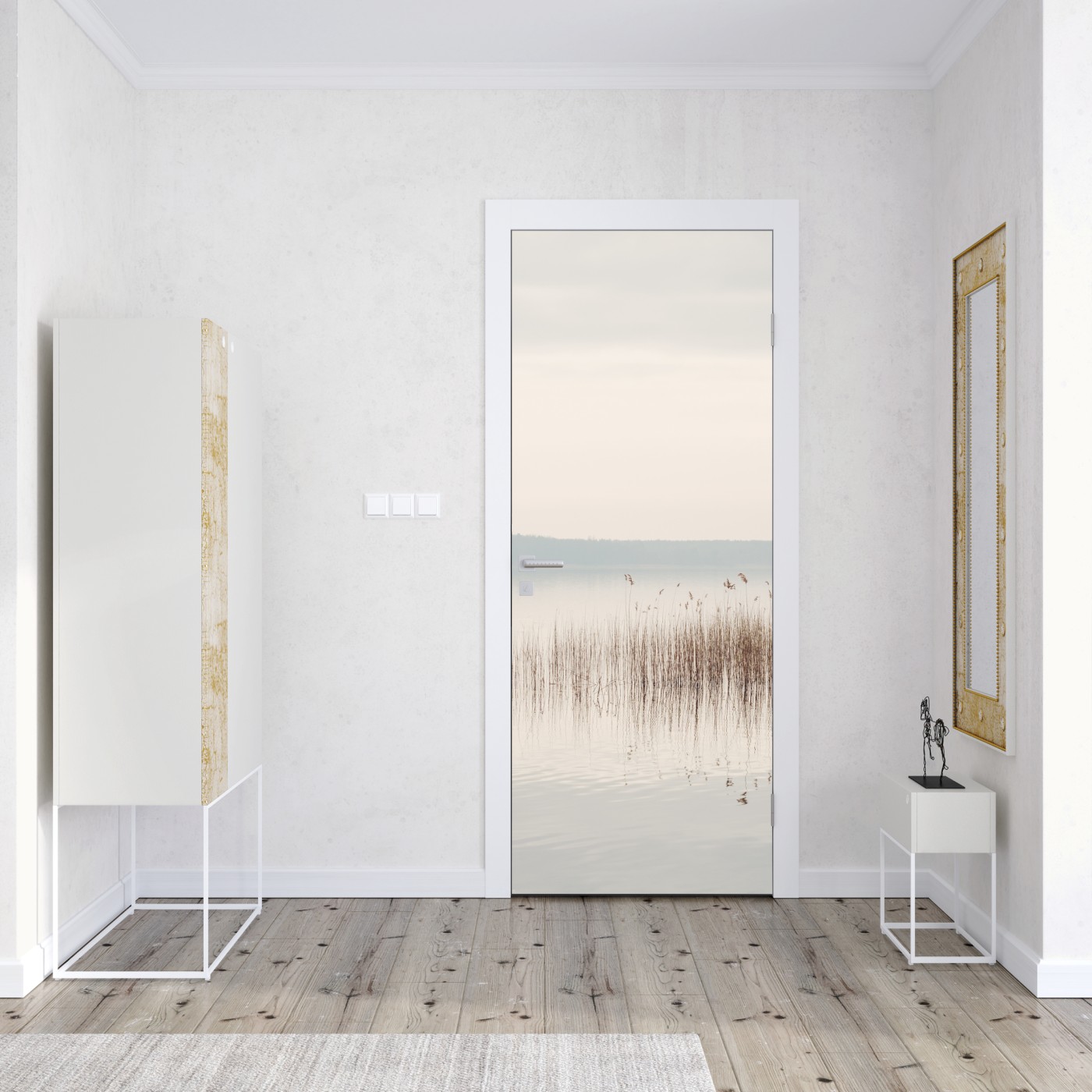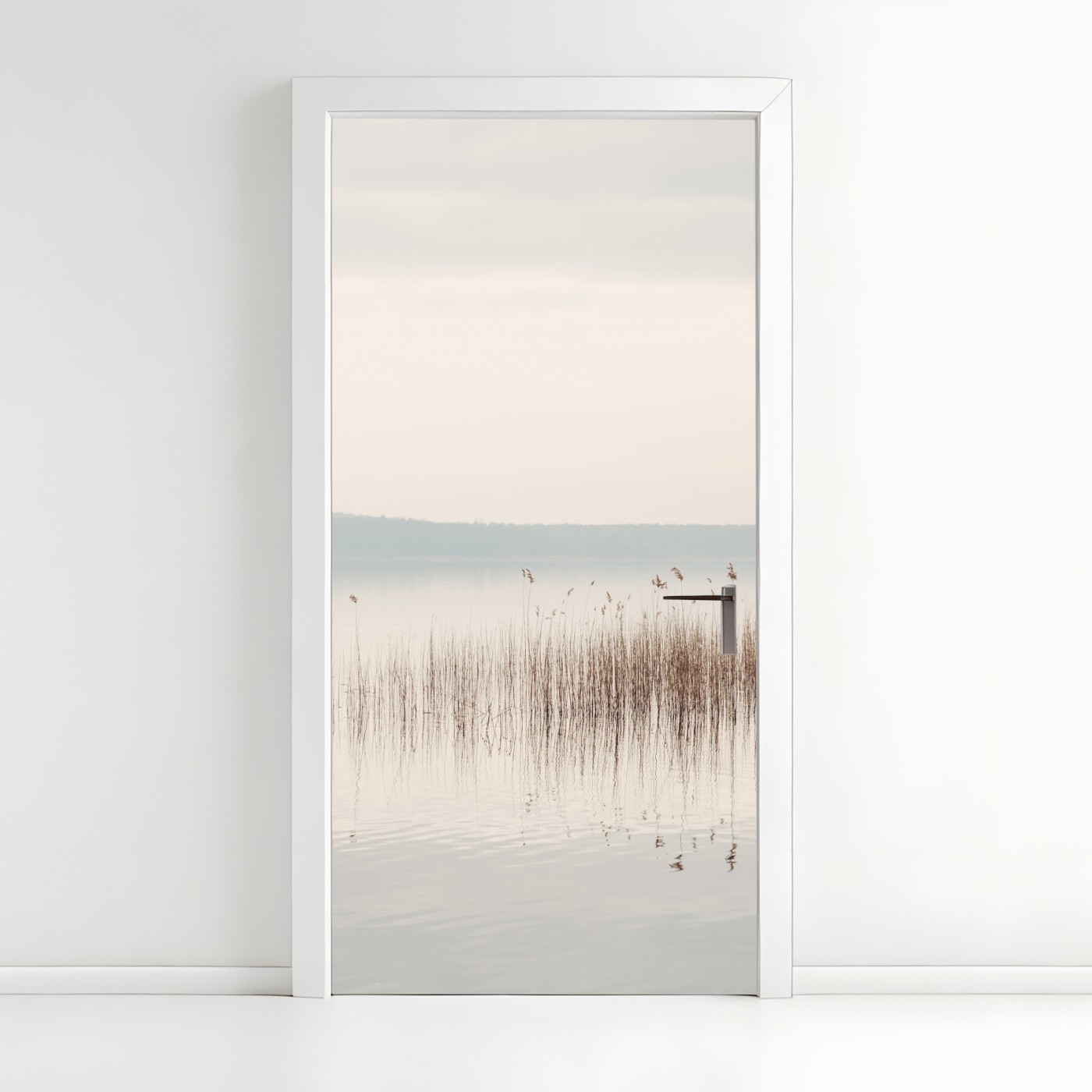 Naklejka na drzwi Spokojne trzcinowisko nad jeziorem