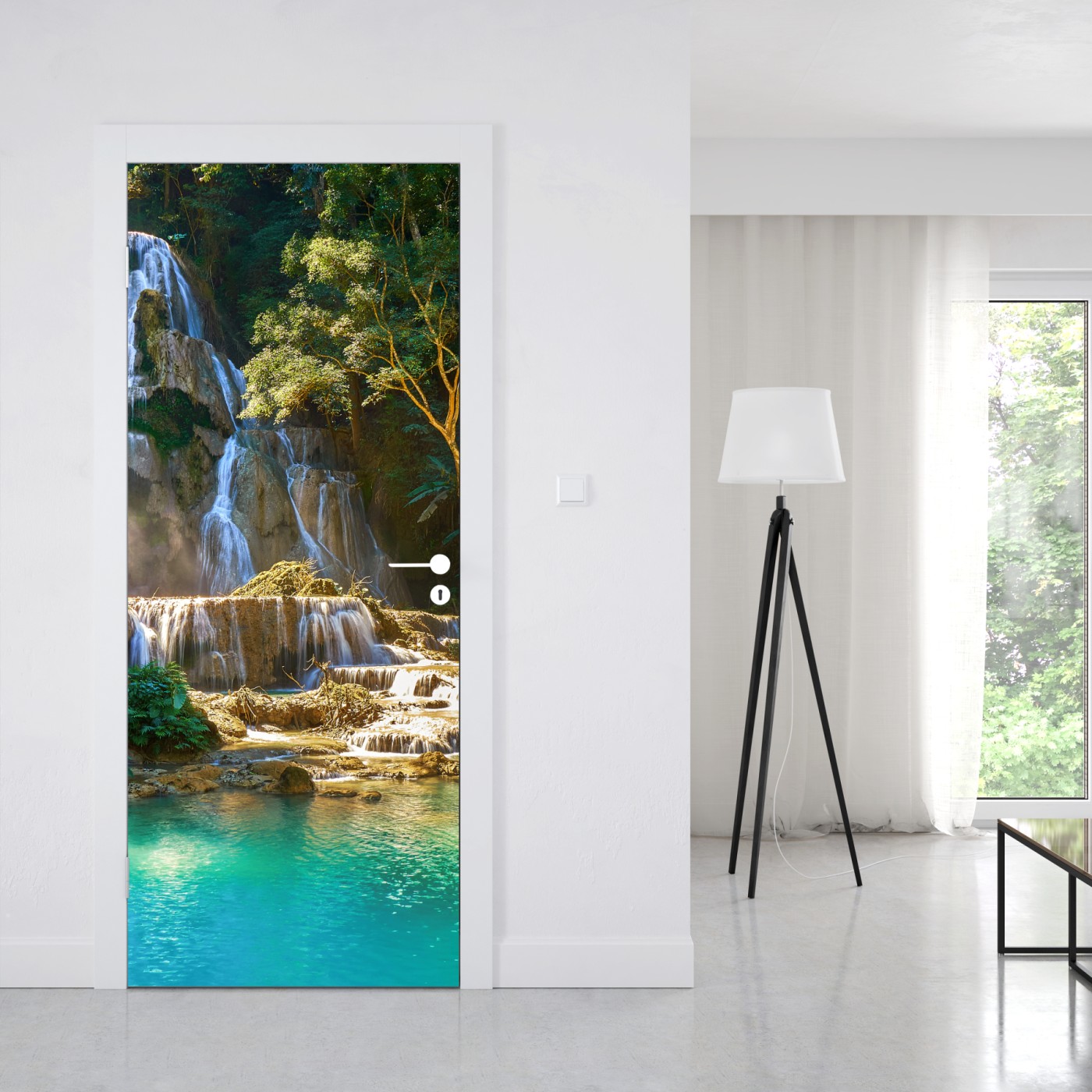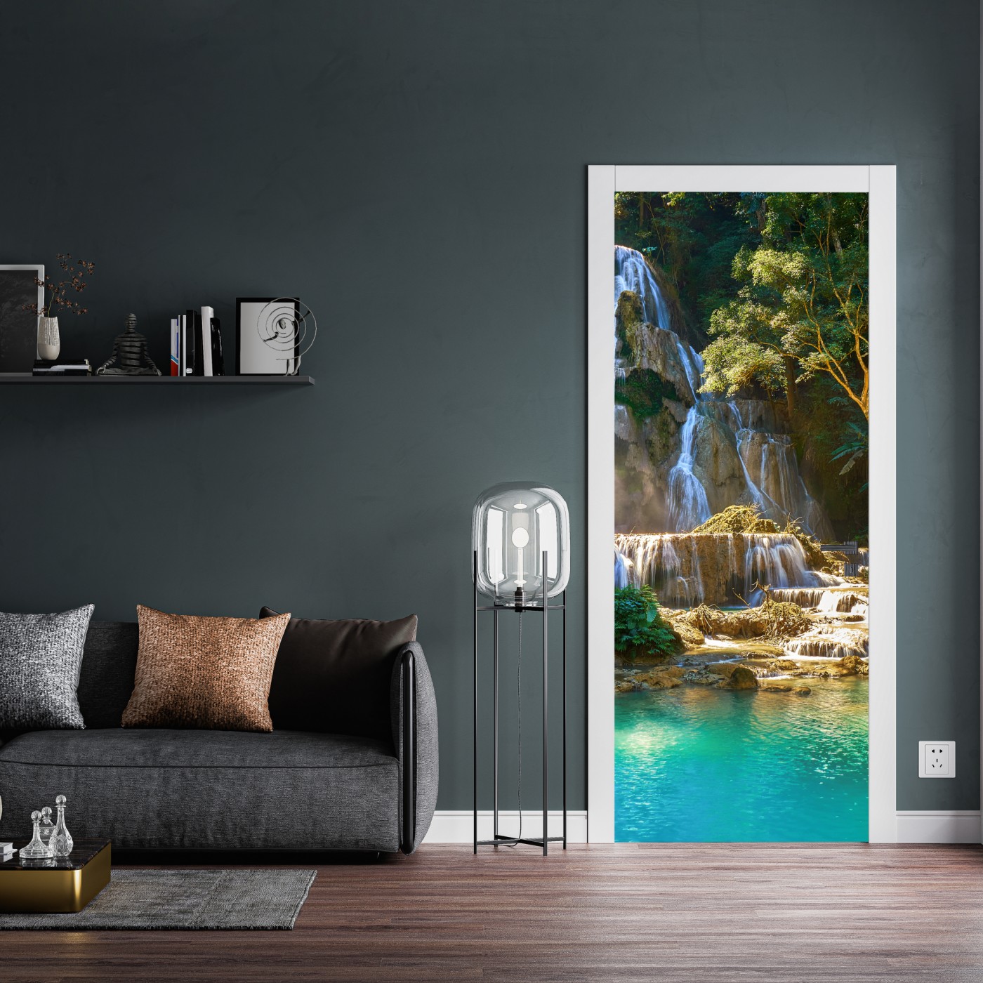 Naklejka na drzwi Turkusowy wodospad w bujnym lesie