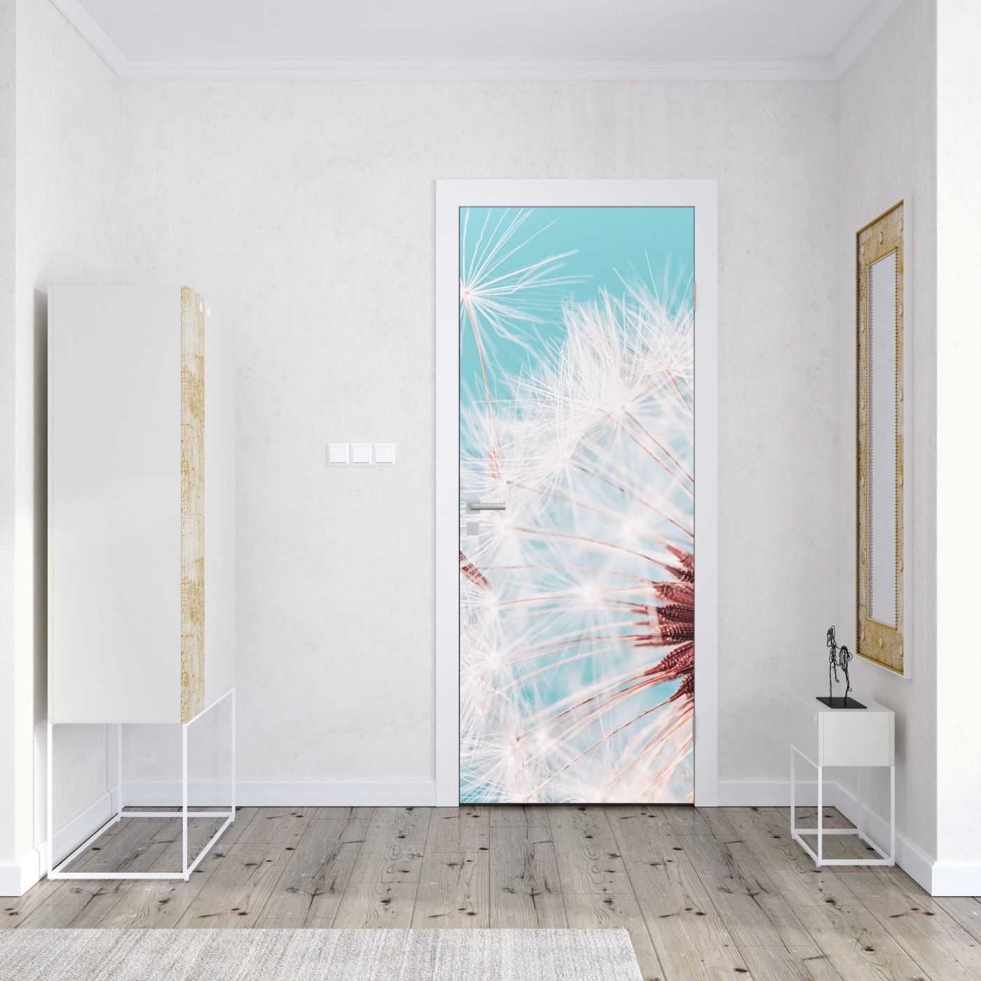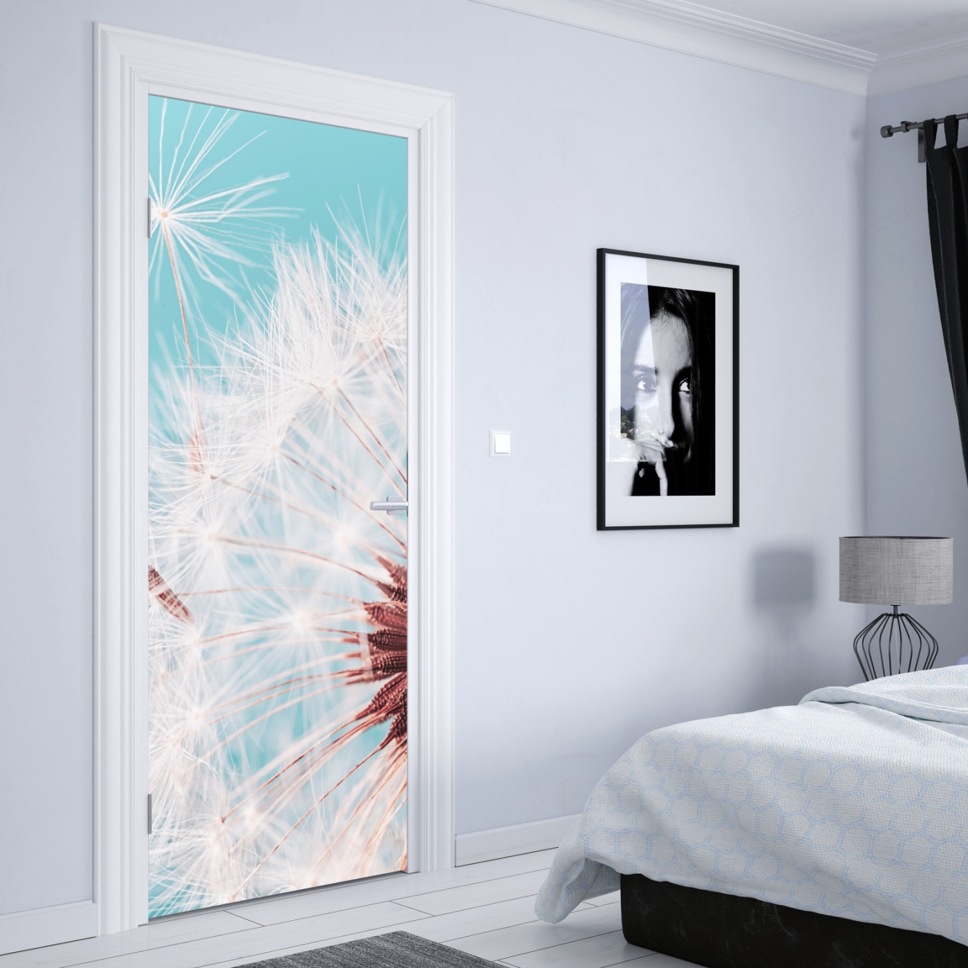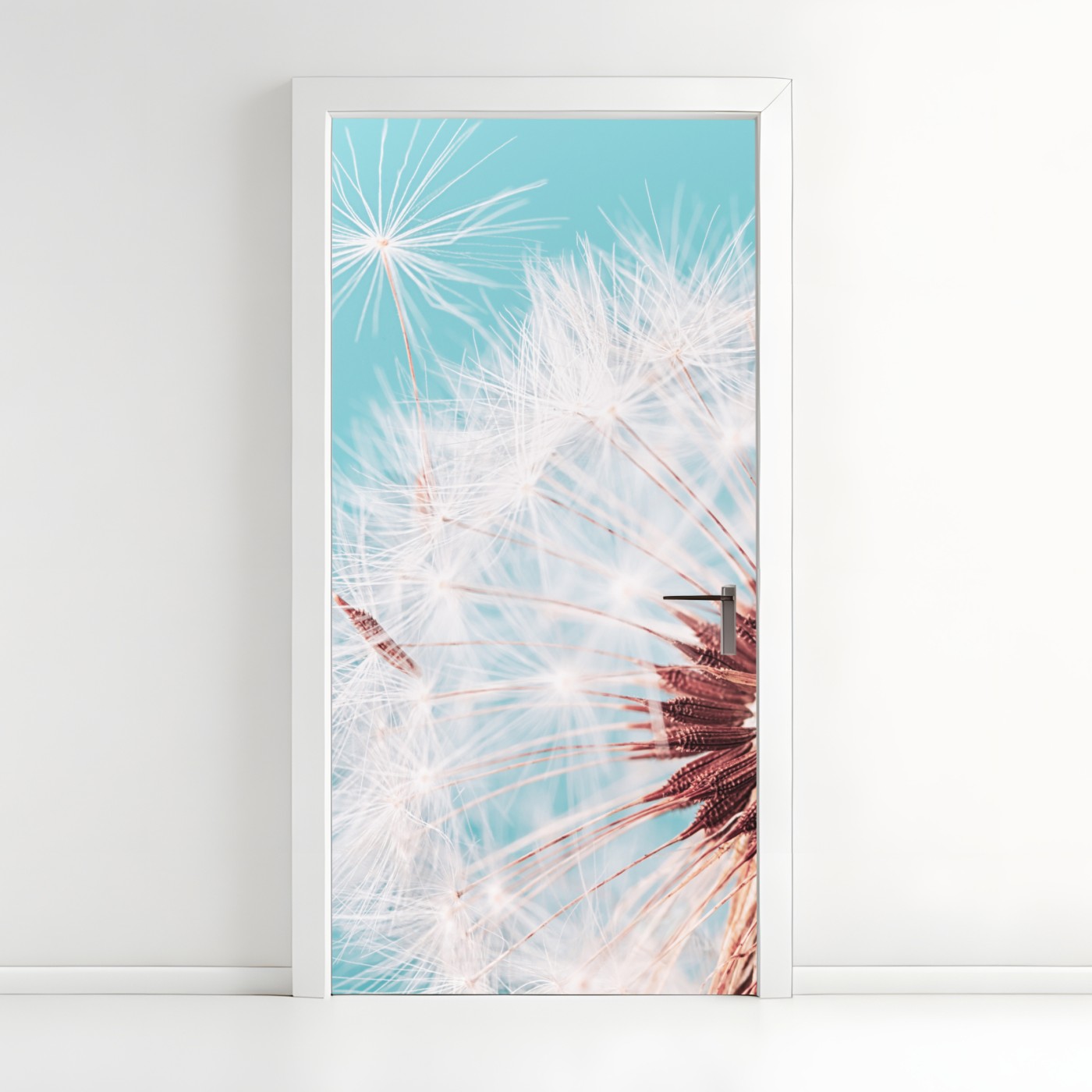 Naklejka na drzwi Delikatny dmuchawiec na turkusowym tle