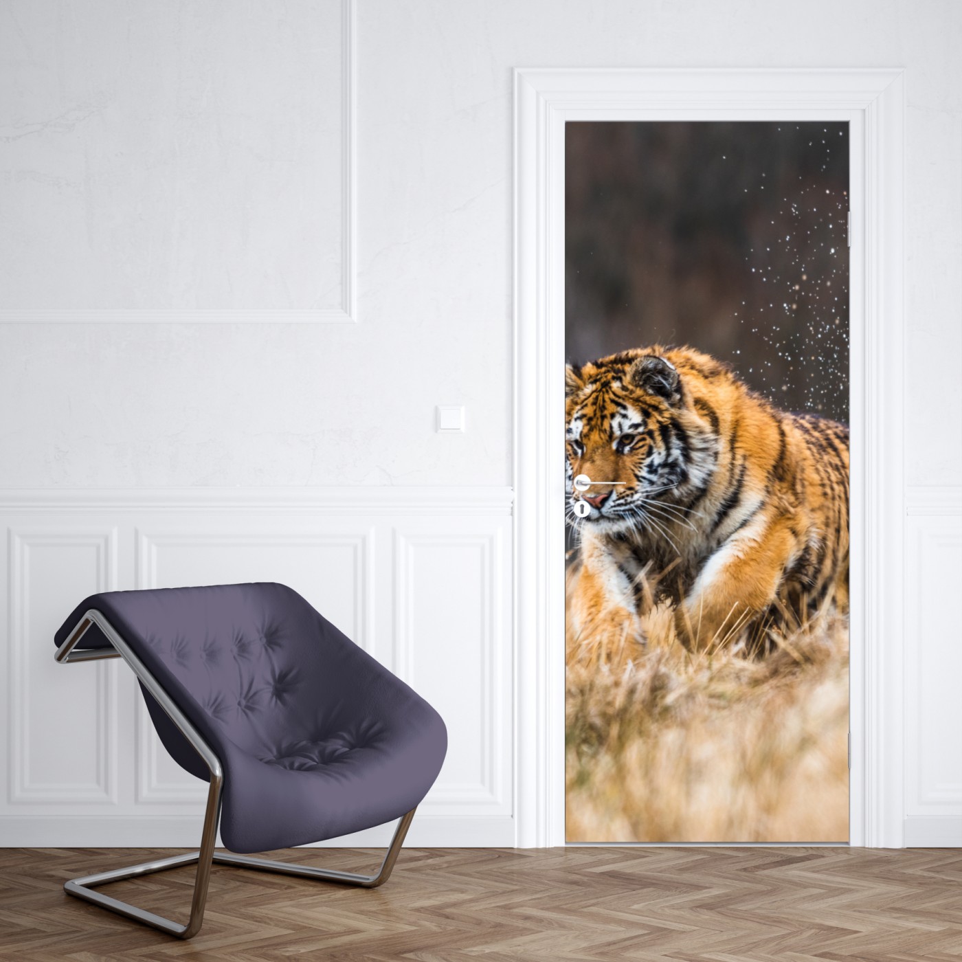 Naklejka na drzwi Tygrys Syberyjski w biegu