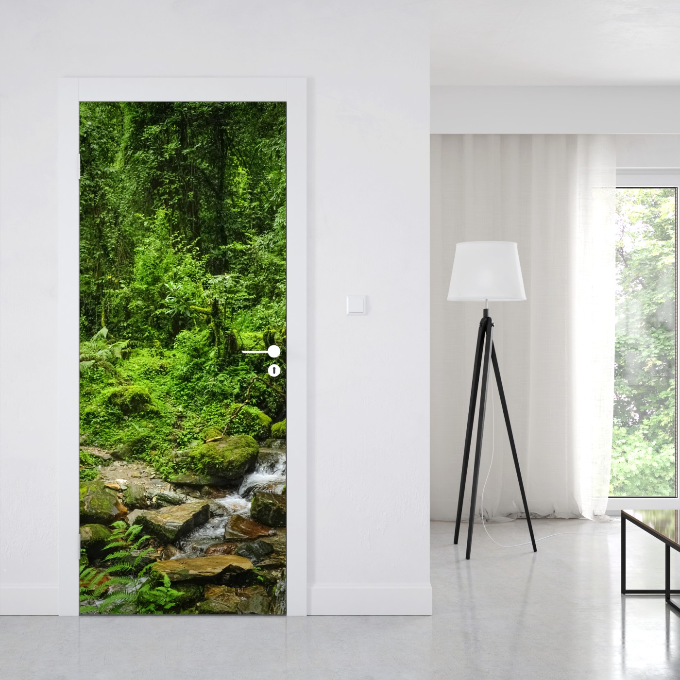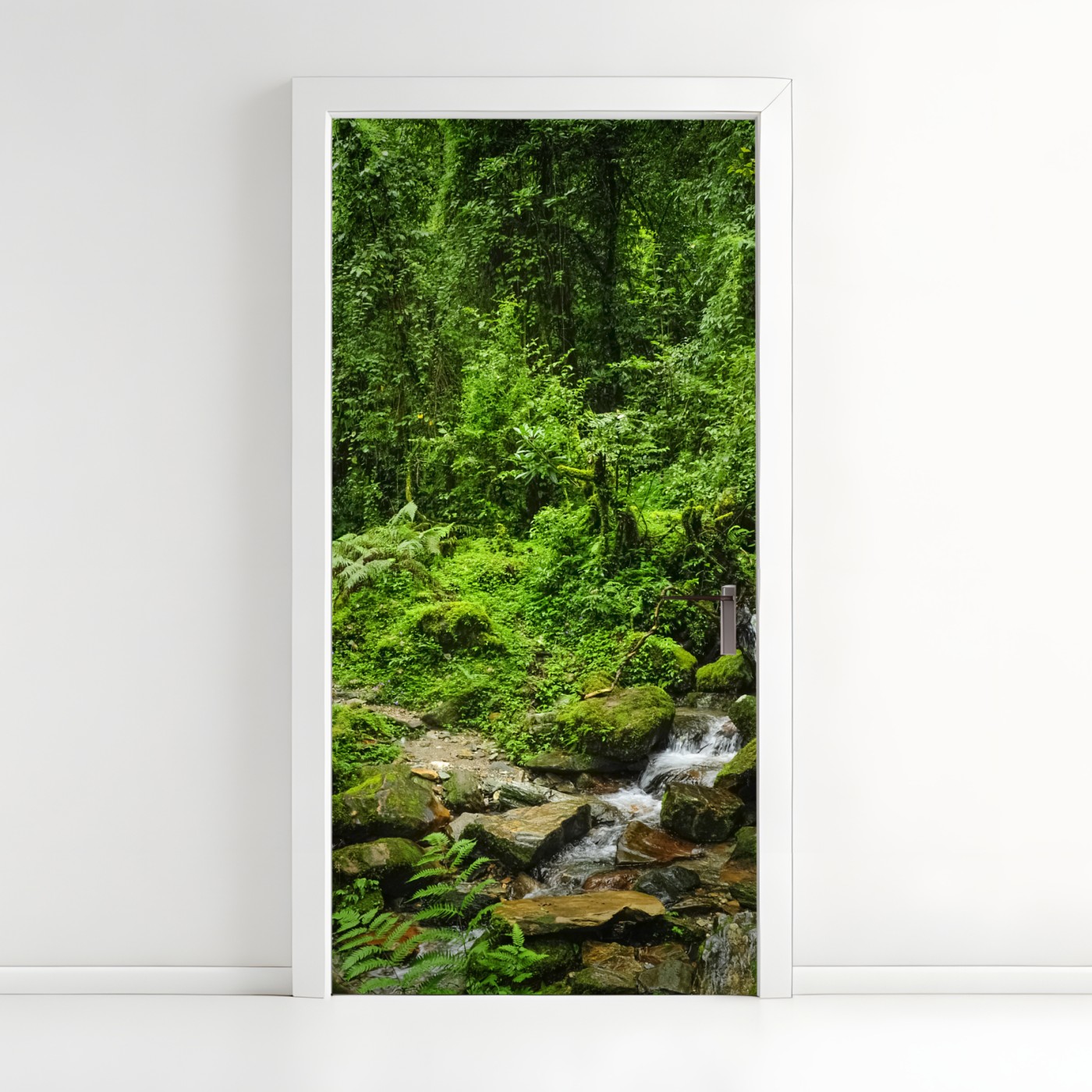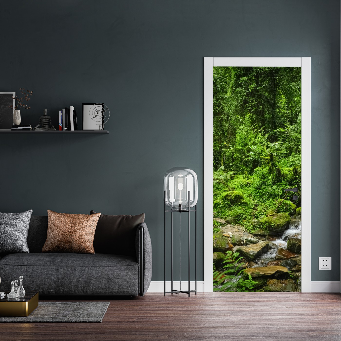 Naklejka na drzwi Bujny zielony leśny wodospad