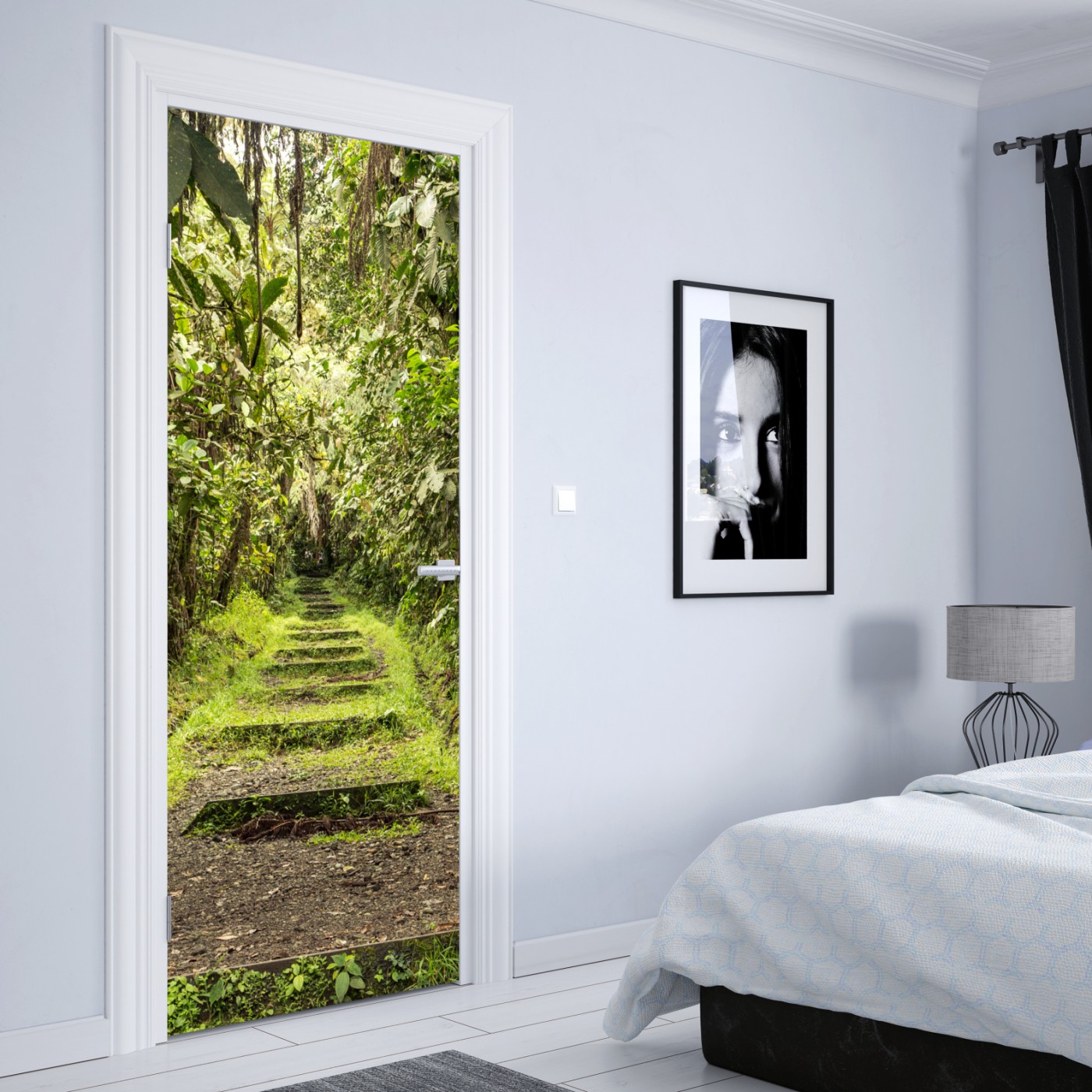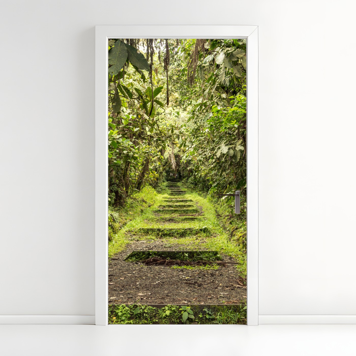 Naklejka na drzwi Ścieżka przez bujną dżunglę