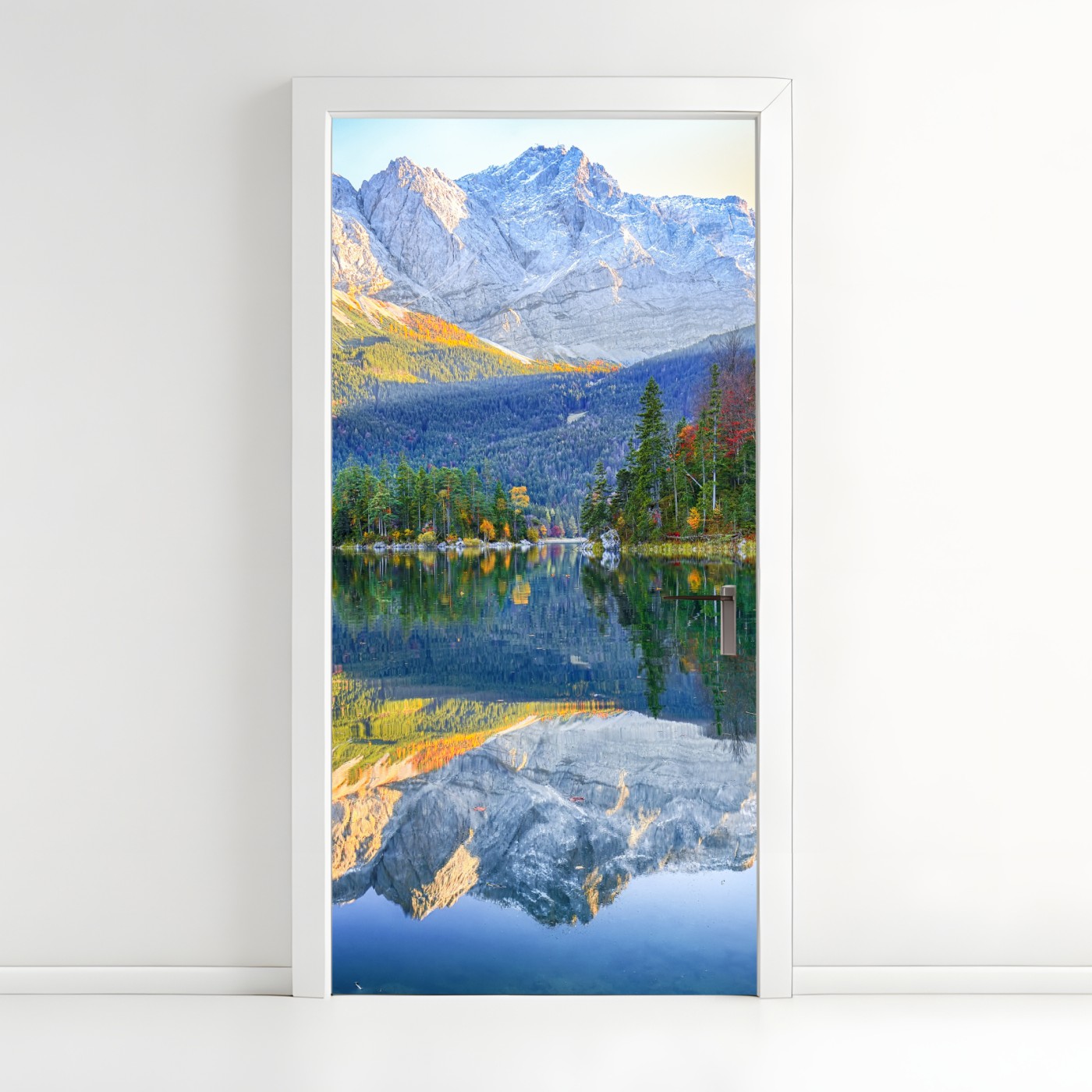 Naklejka na drzwi Jesienne odbicie na Eibsee przy Zugspitze