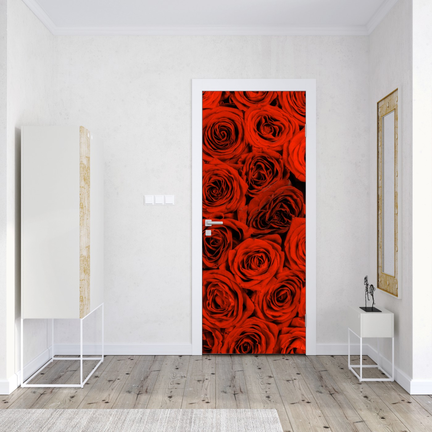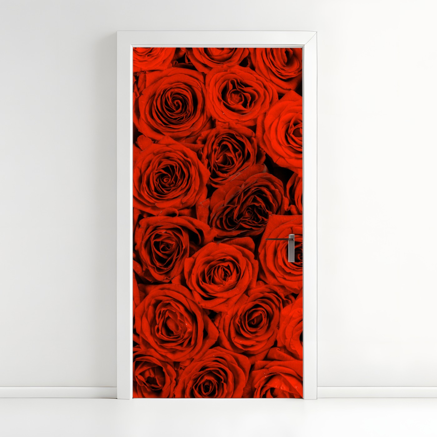 Naklejka na drzwi Bujny bukiet czerwonych róż