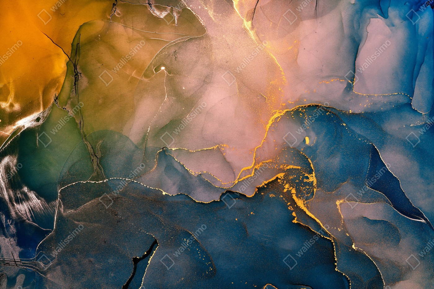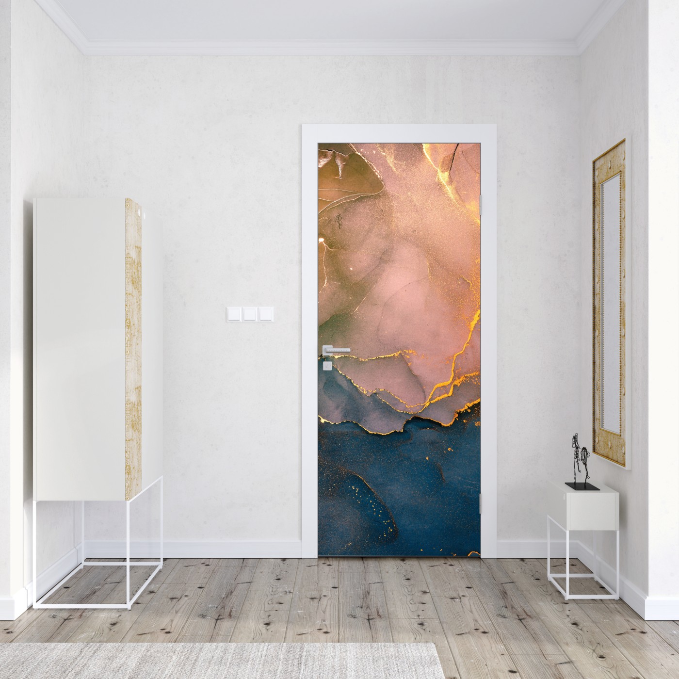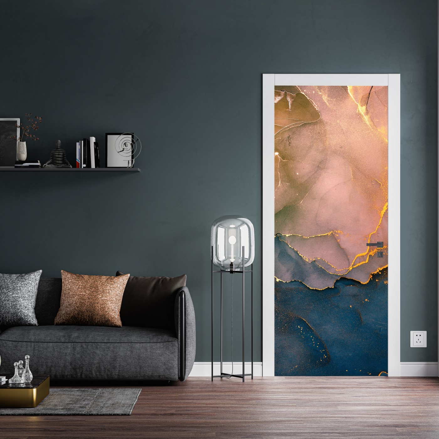 Naklejka na drzwi Niebiesko-złoty abstrakcyjny marmur