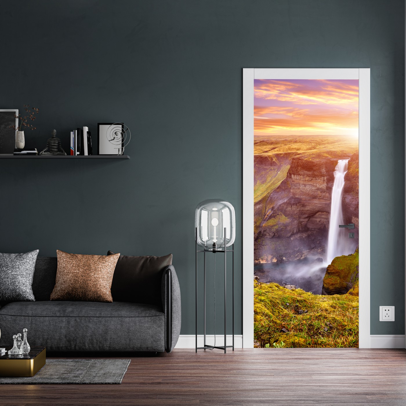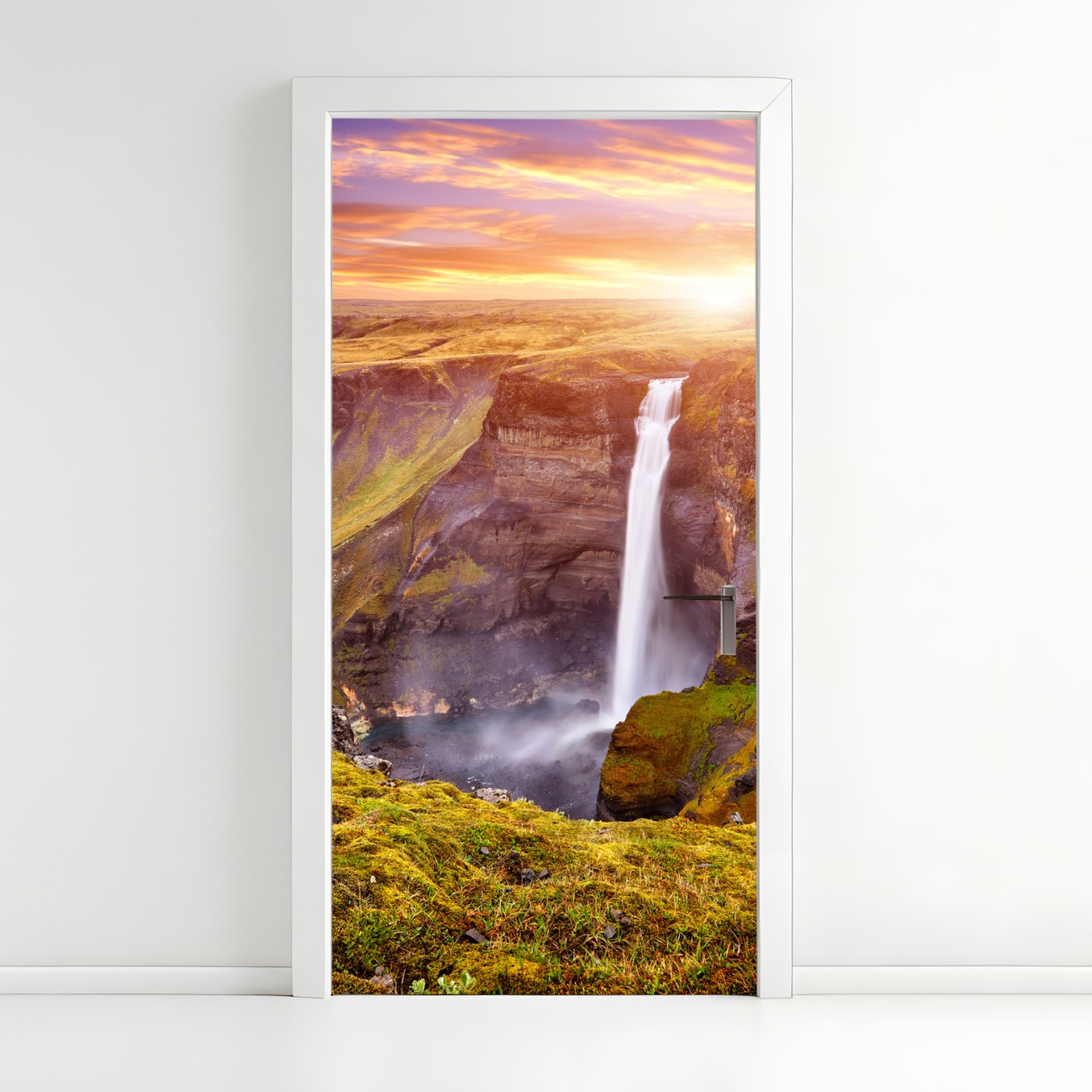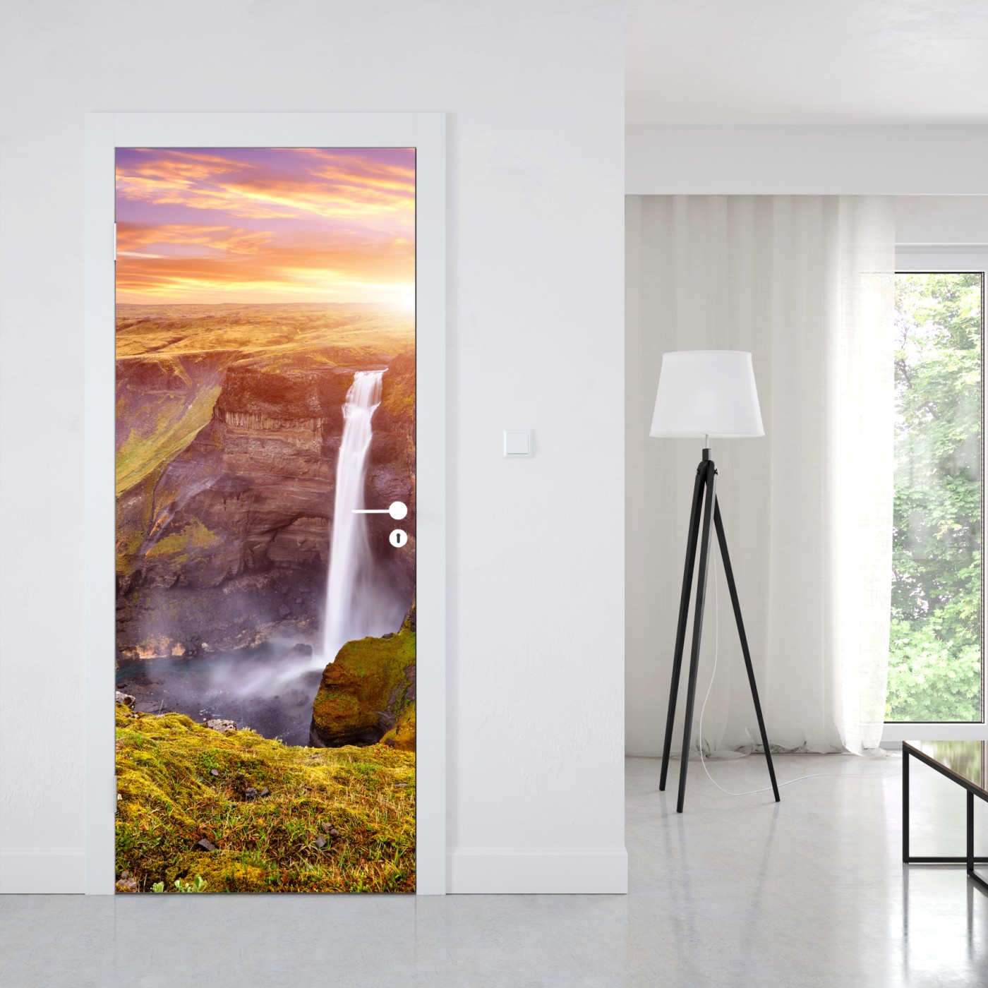 Naklejka na drzwi Haifoss wodospad o zachodzie słońca