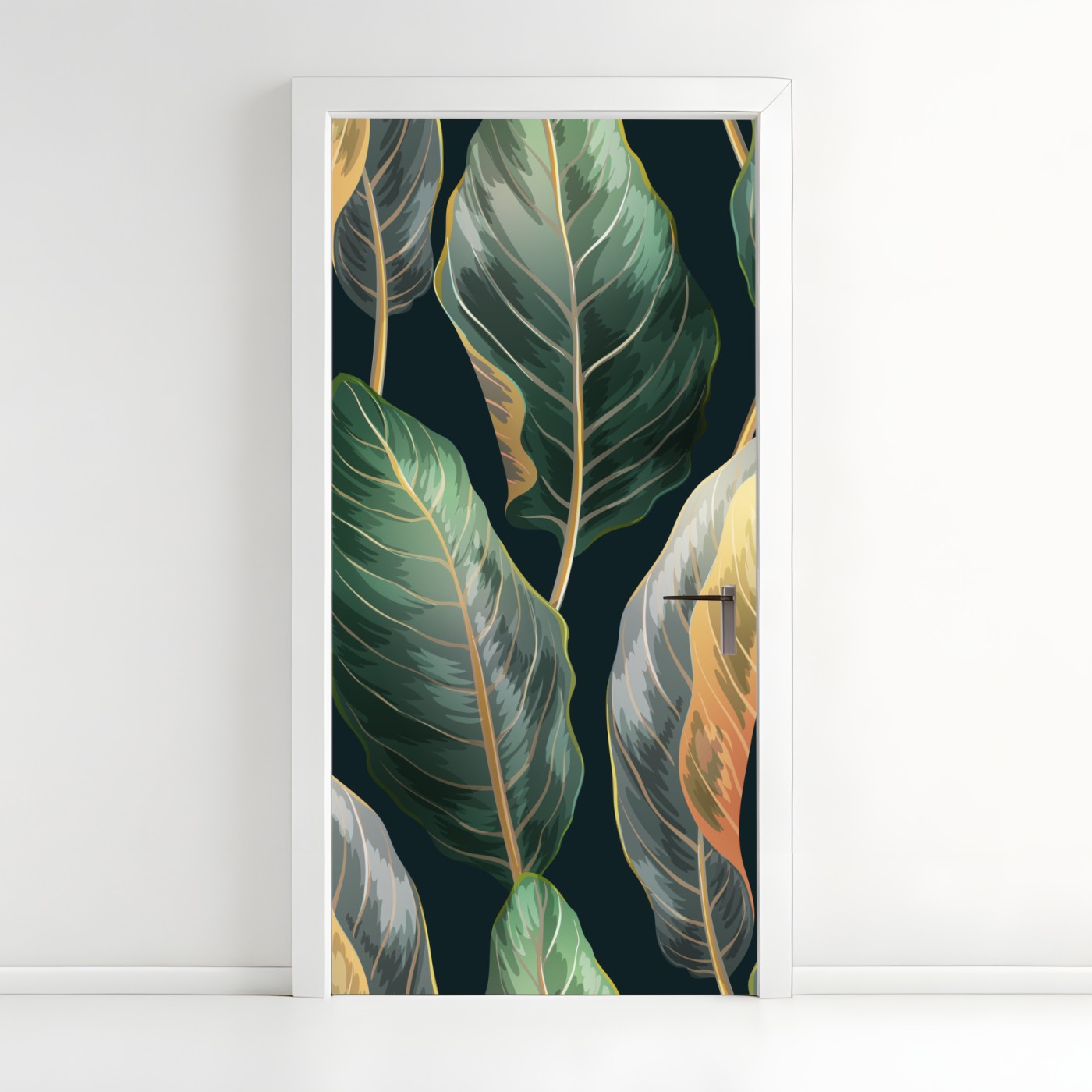 Naklejka na drzwi Vintage tropikalny wzór z liśćmi