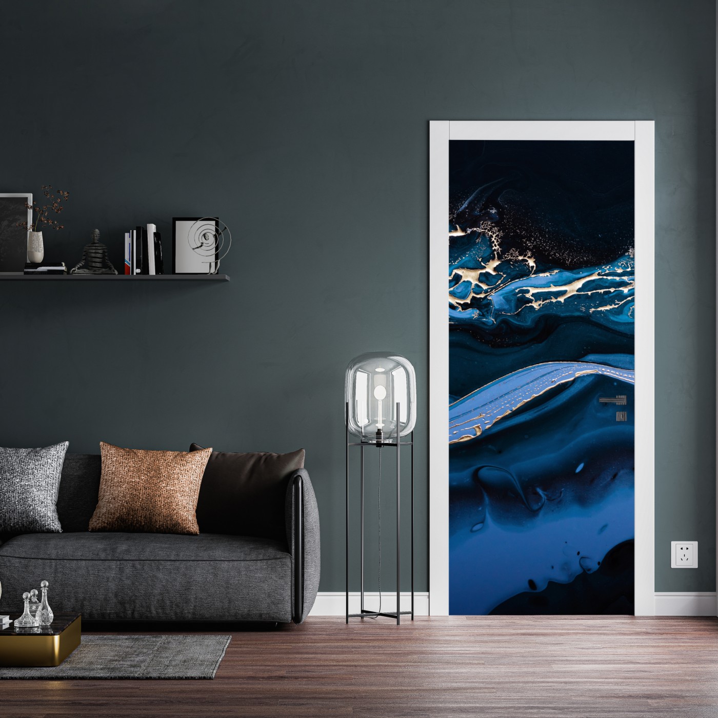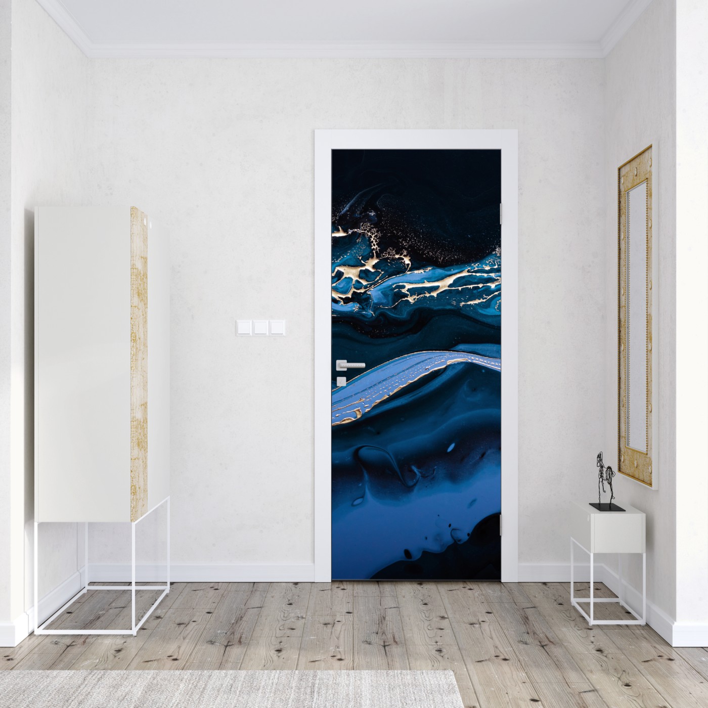 Naklejka na drzwi Granatowo-złota abstrakcja w ruchu