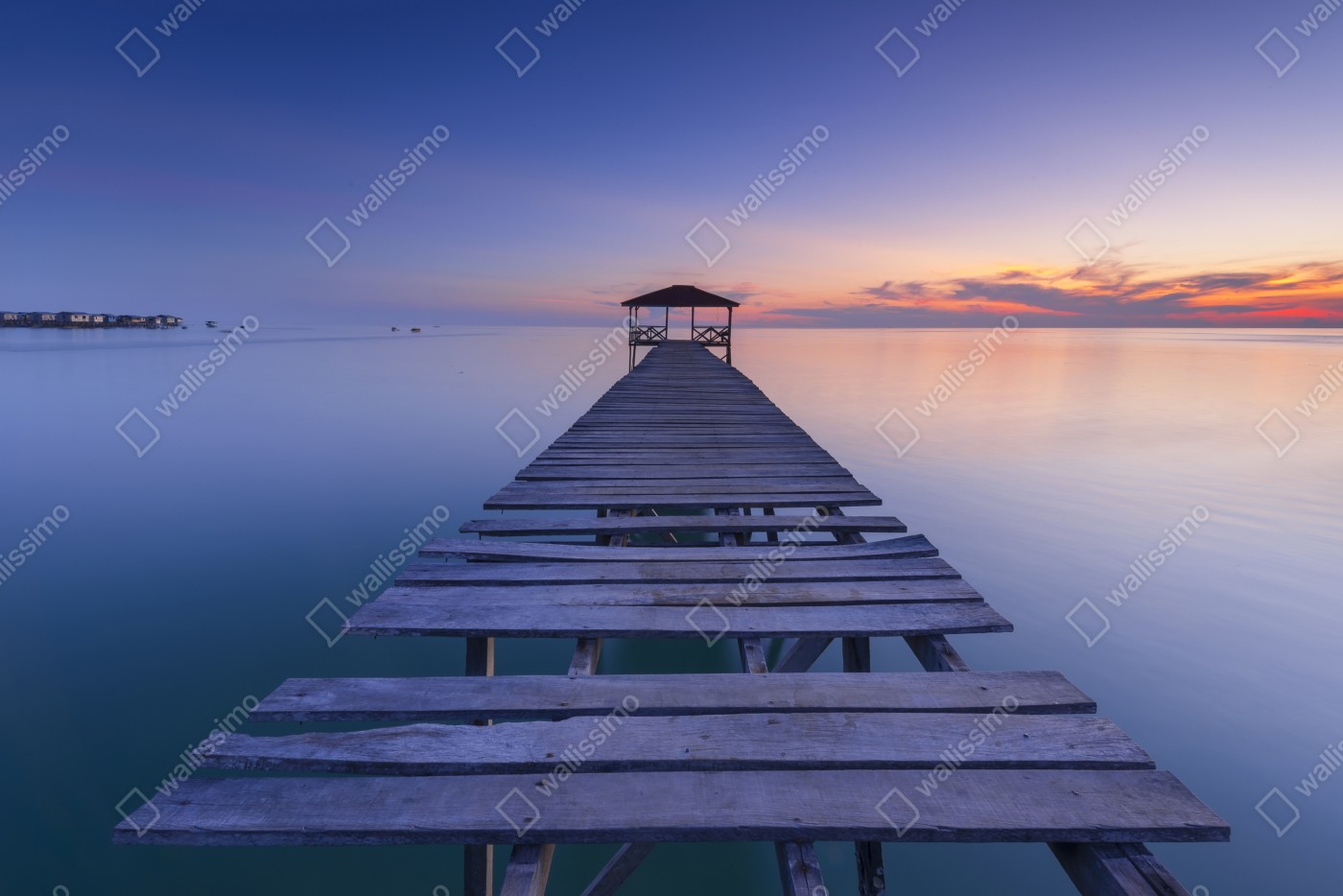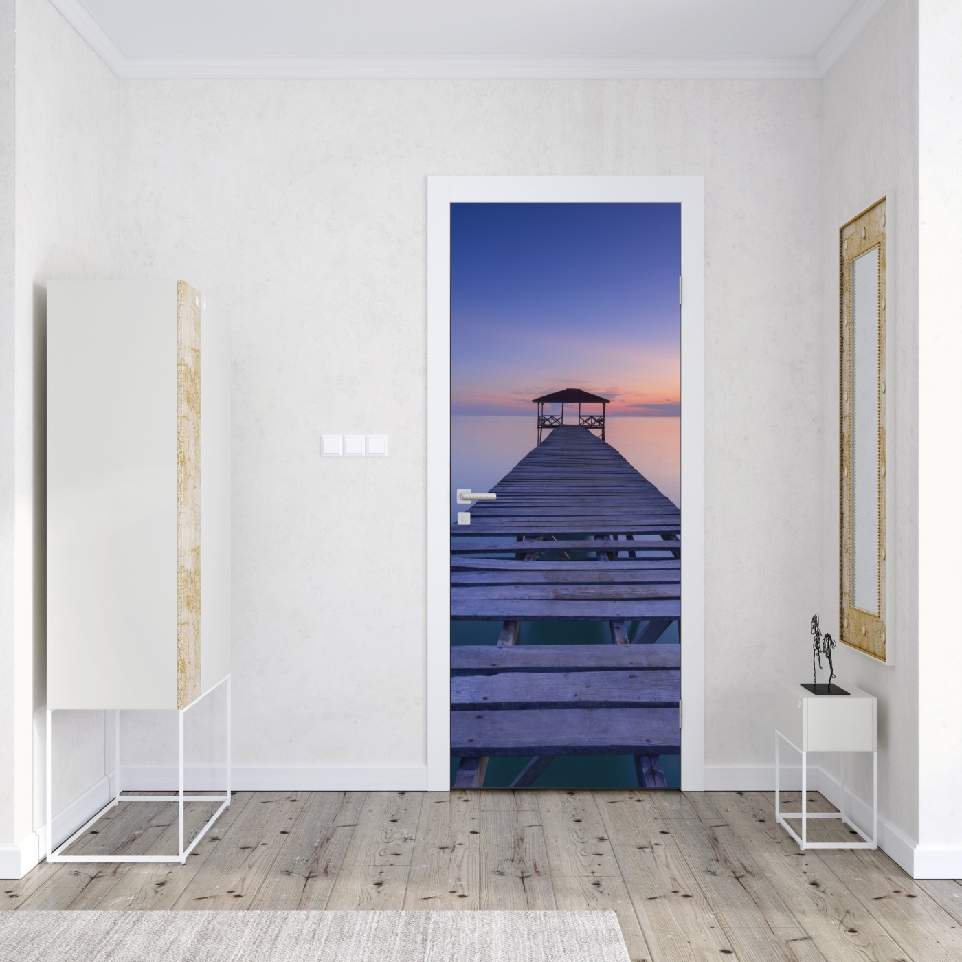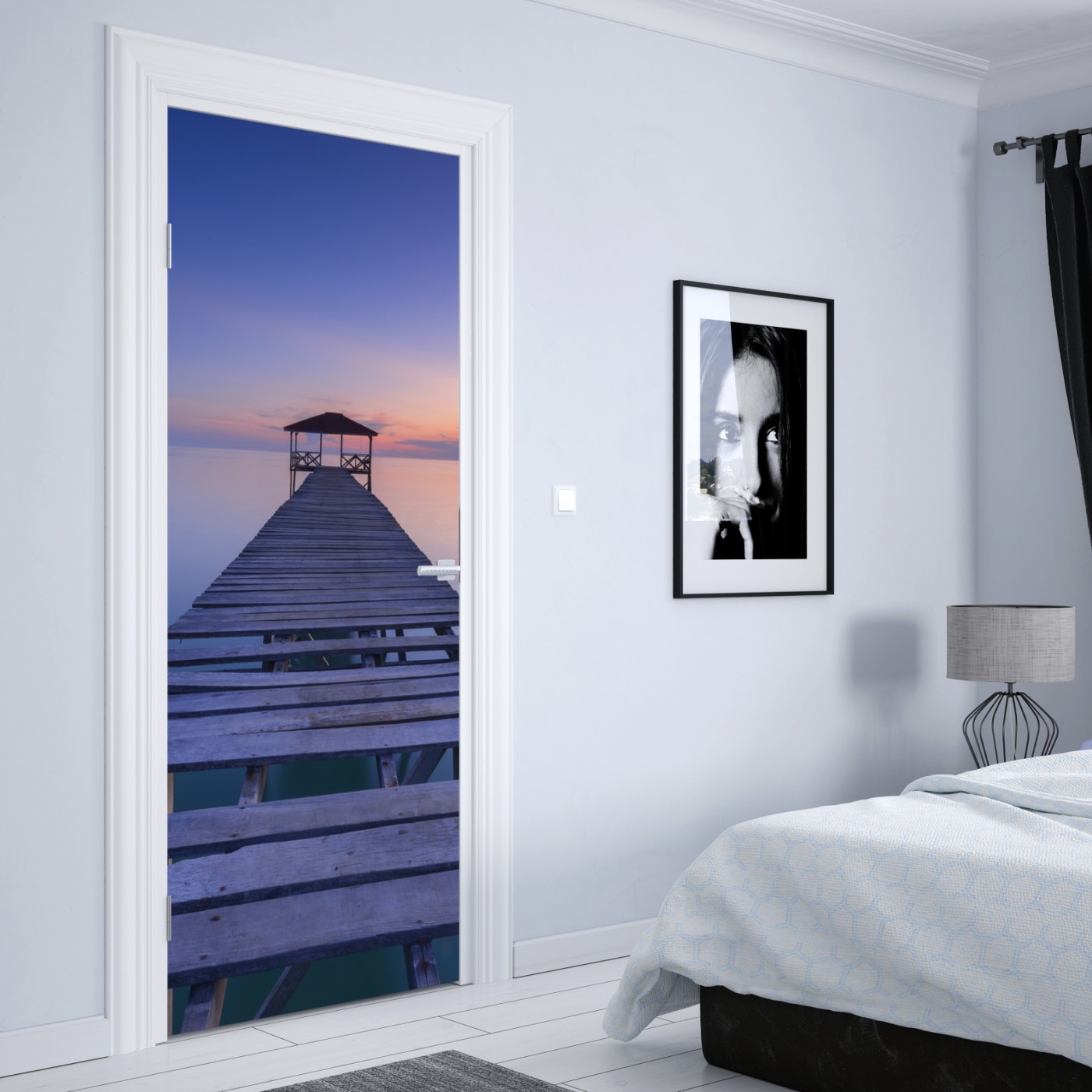 Naklejka na drzwi Spokojne drewniane molo o zachodzie słońca