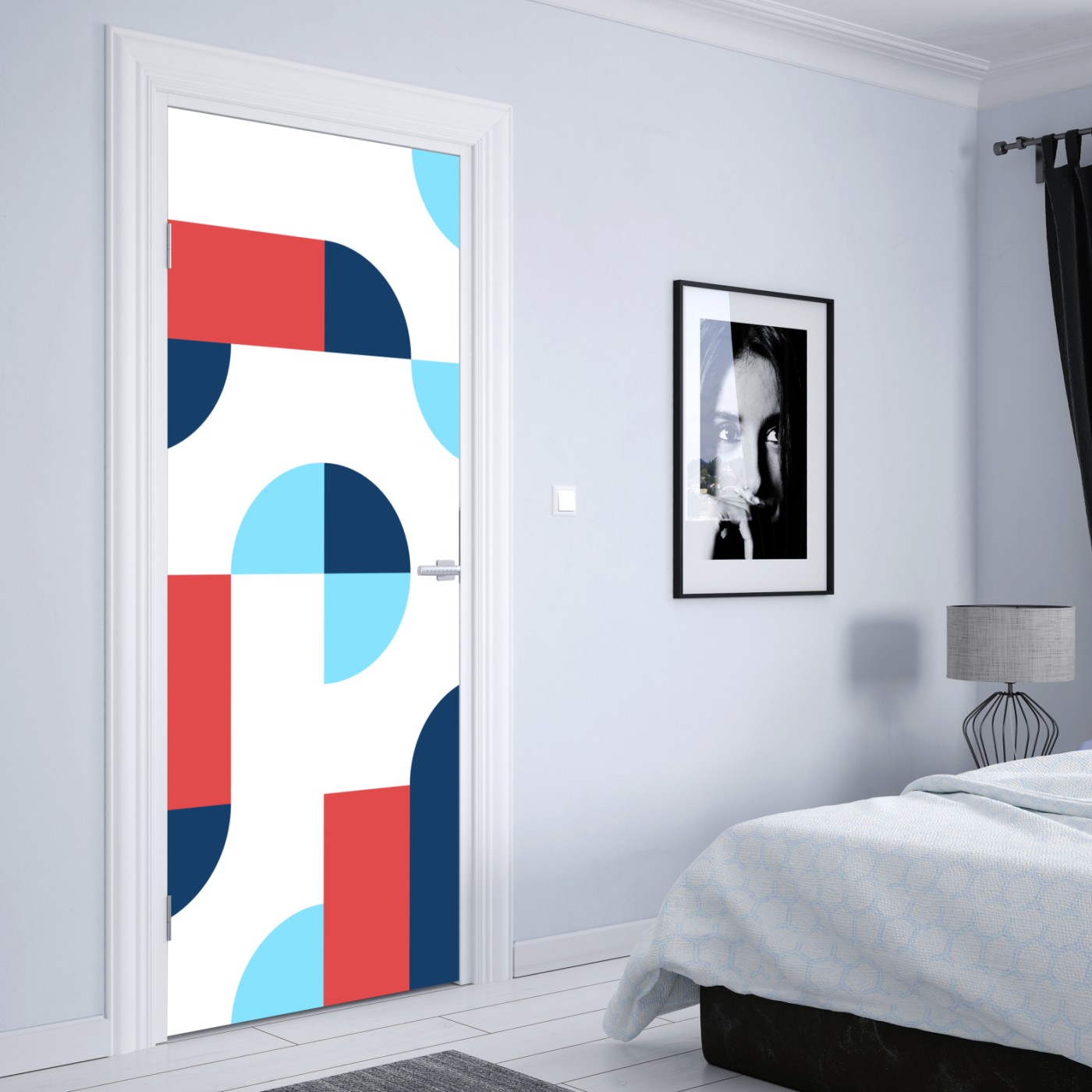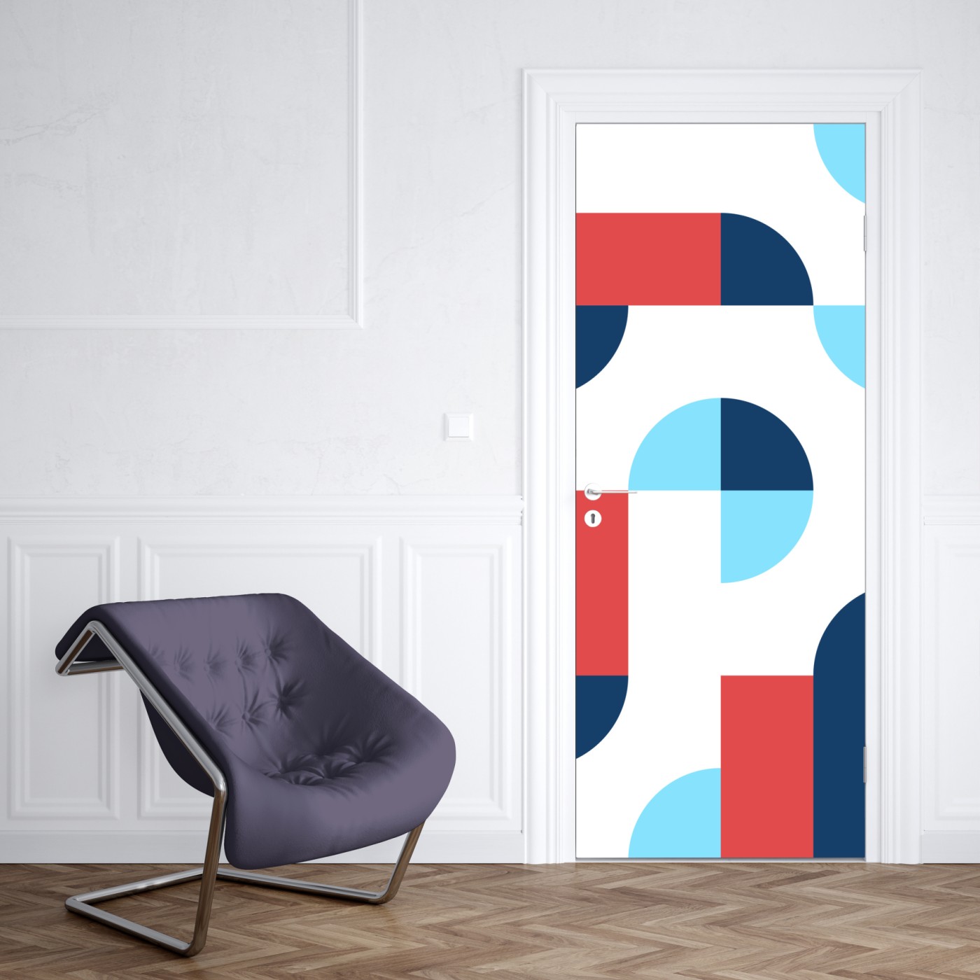 Naklejka na drzwi Odważny geometryczny wzór w granacie i koralu