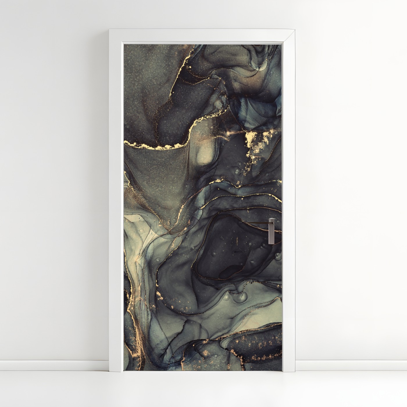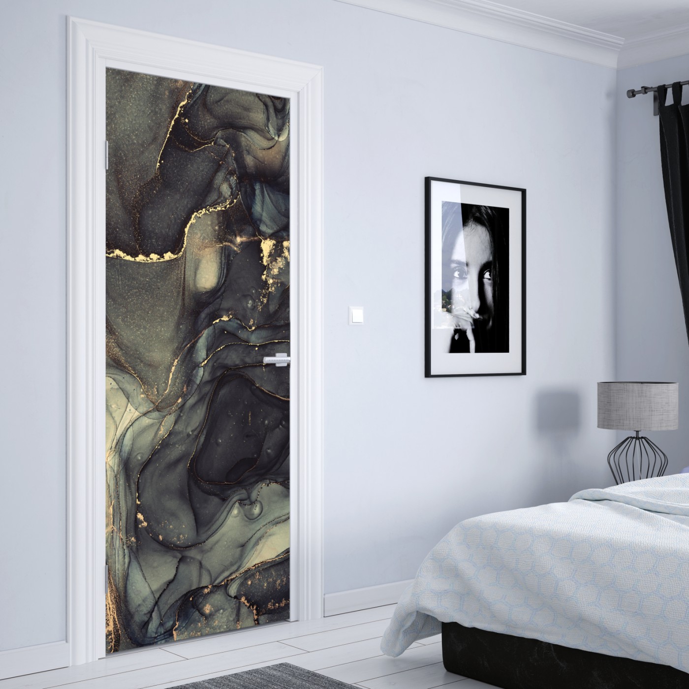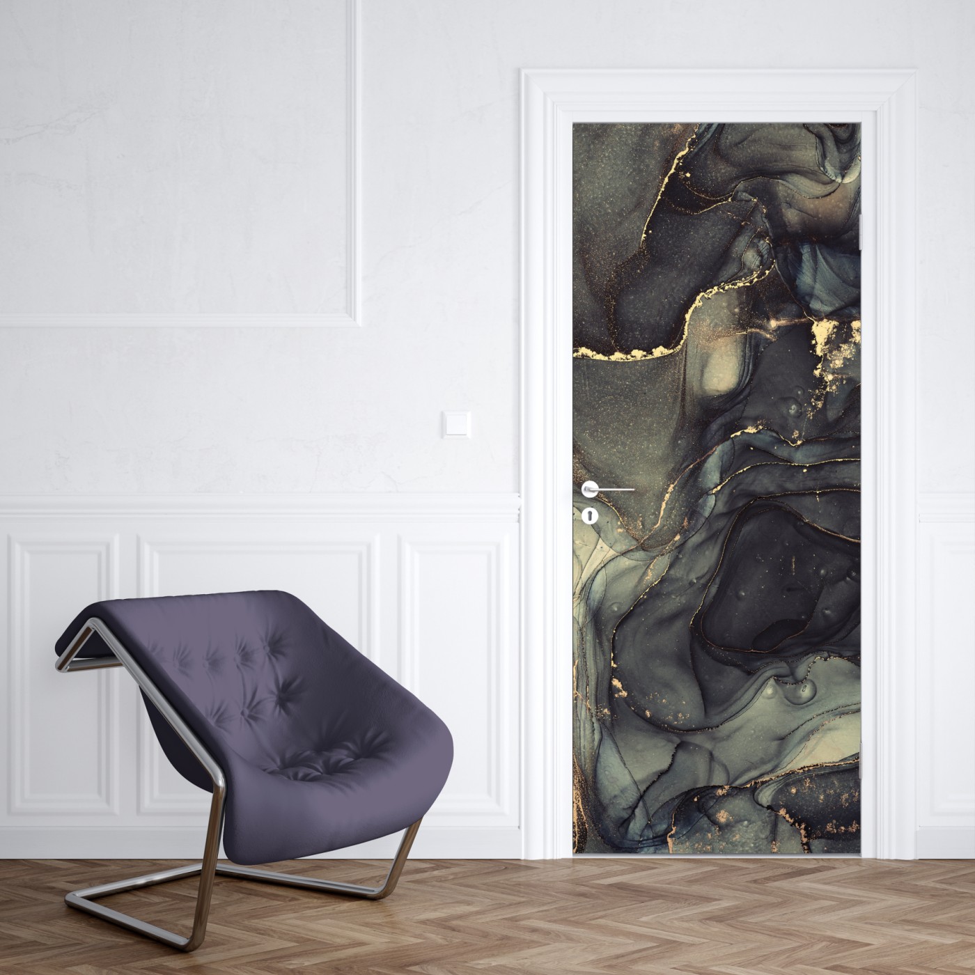 Naklejka na drzwi Luksusowa abstrakcja alkoholowa ze złotymi żyłkami