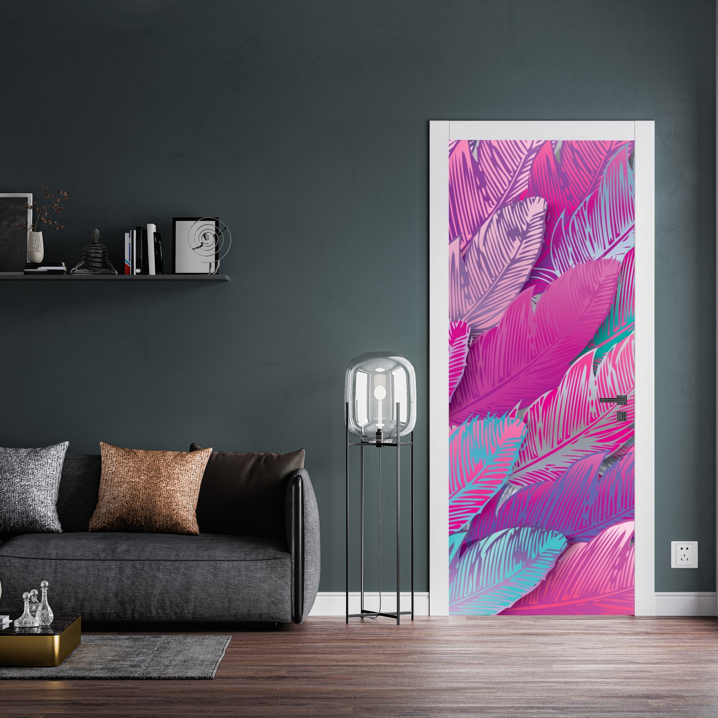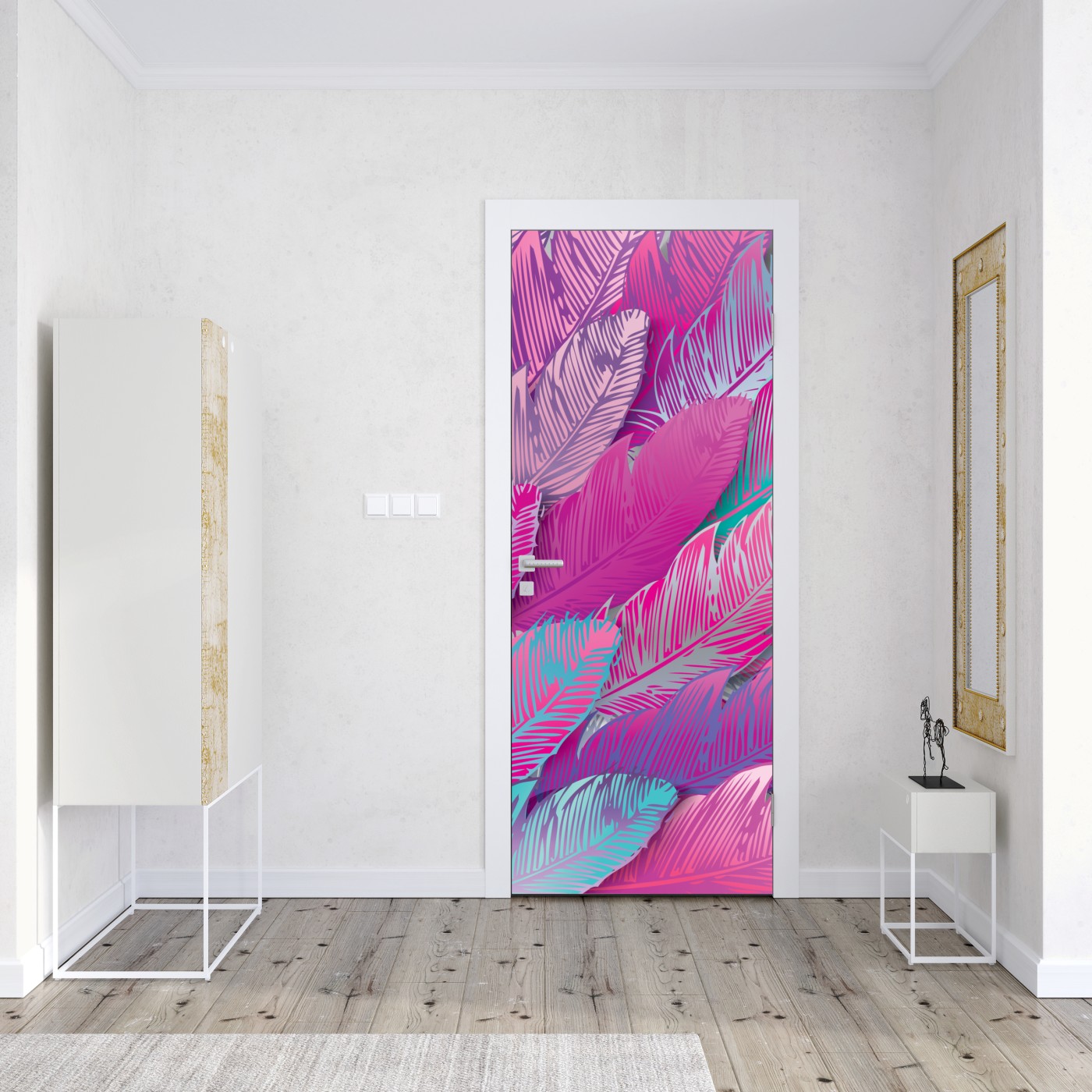 Naklejka na drzwi Iryzujący różowy wzór piór
