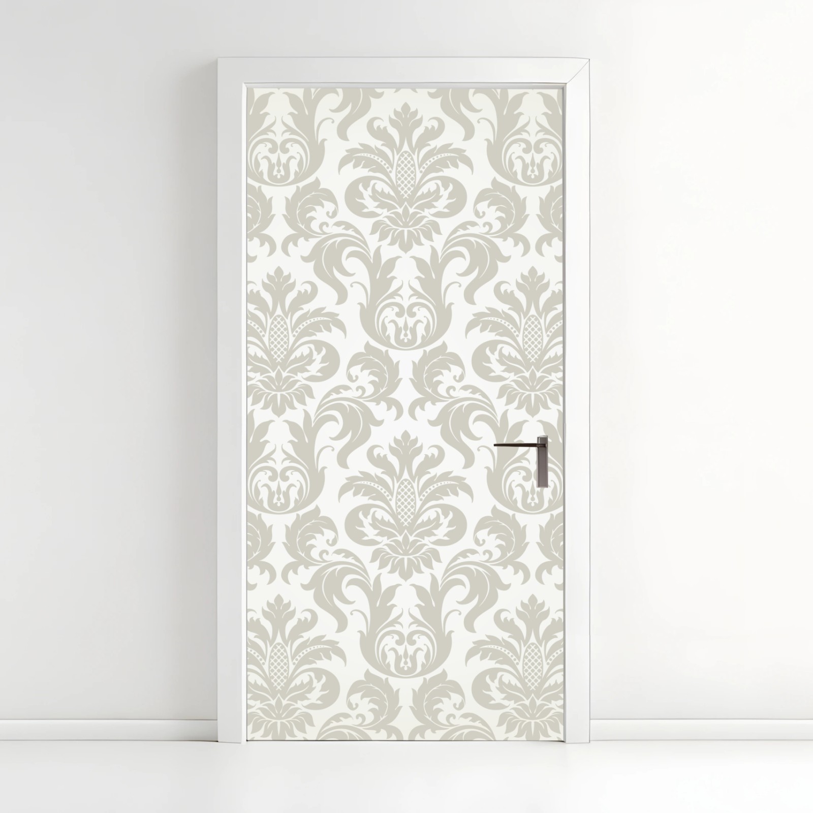 Naklejka na drzwi Elegancki beżowy wzór damask