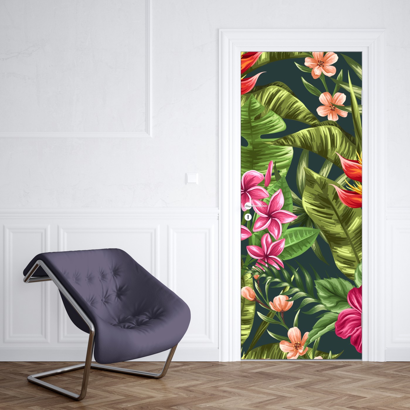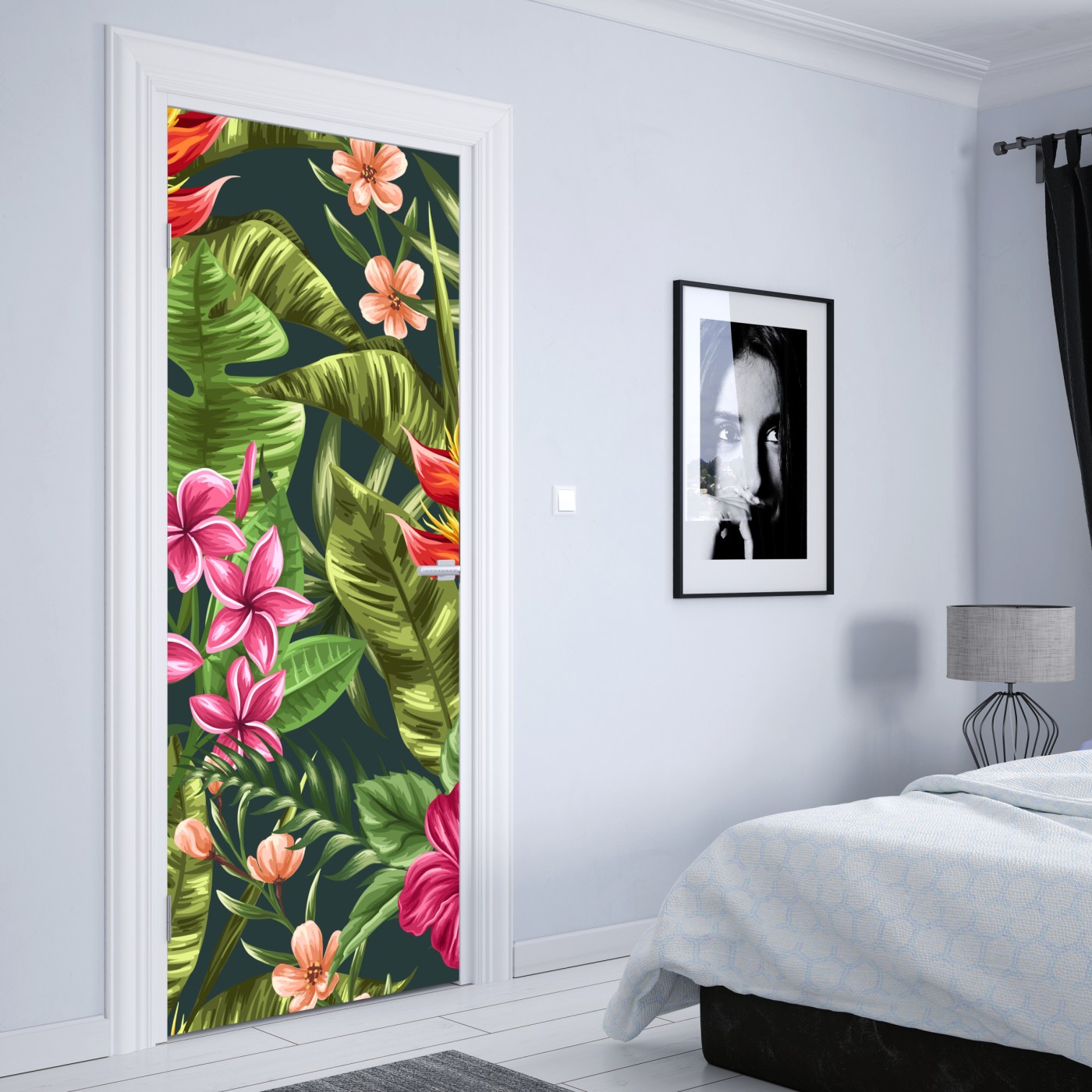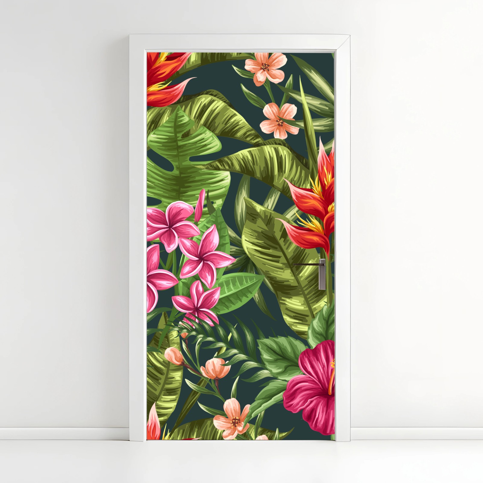 Naklejka na drzwi Tropikalny wzór hibiskusa i plumerii
