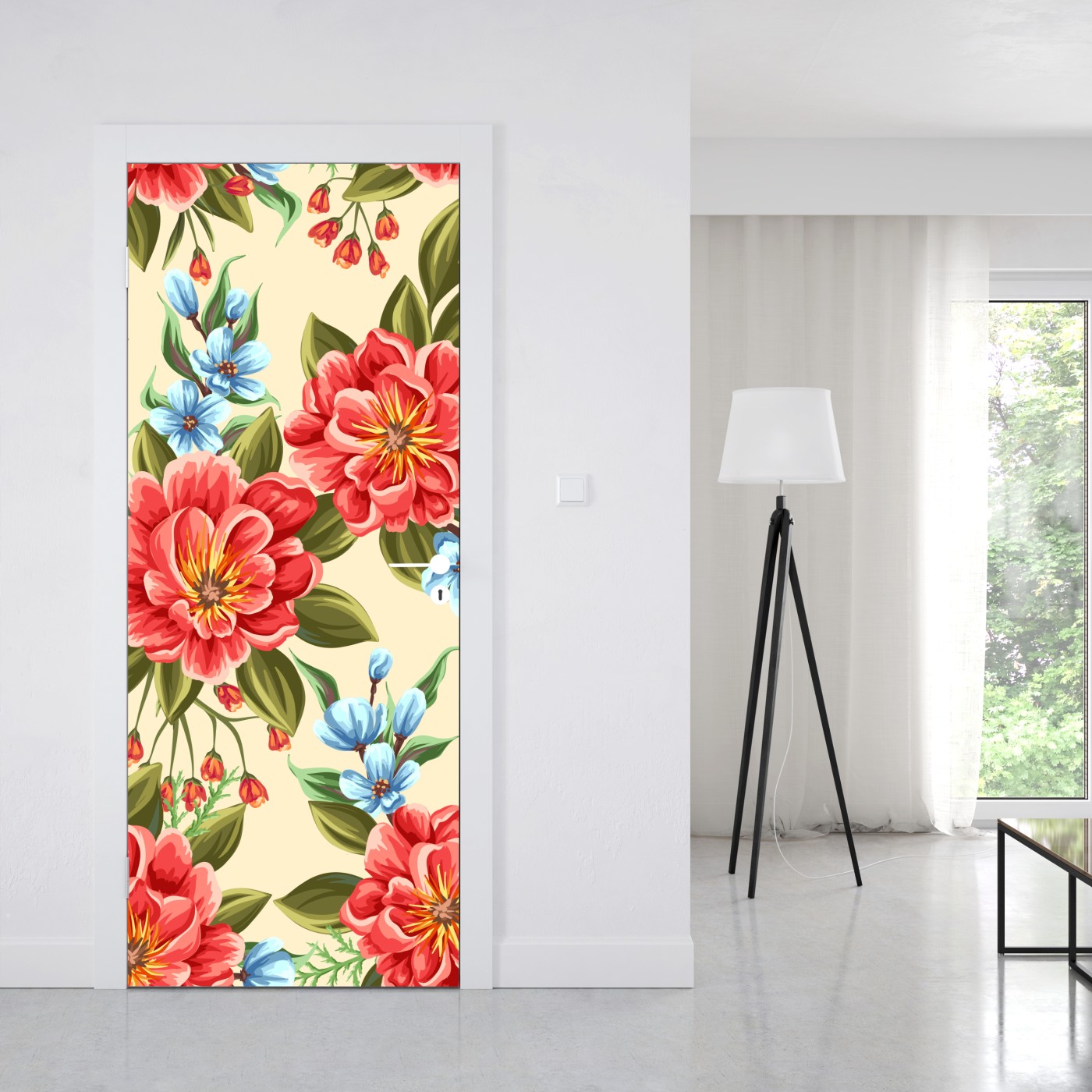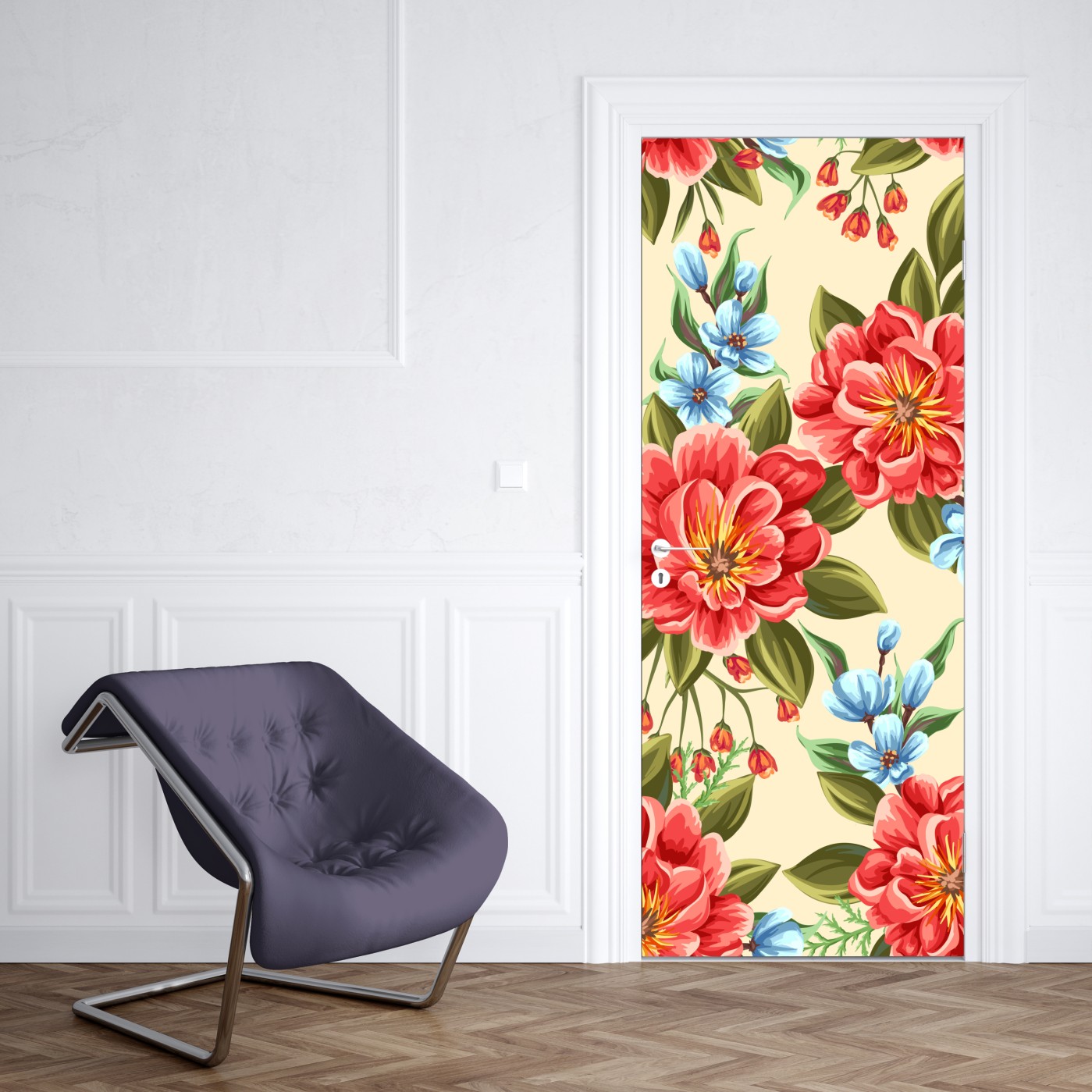 Naklejka na drzwi Intensywny akwarelowy wzór kwiatowy