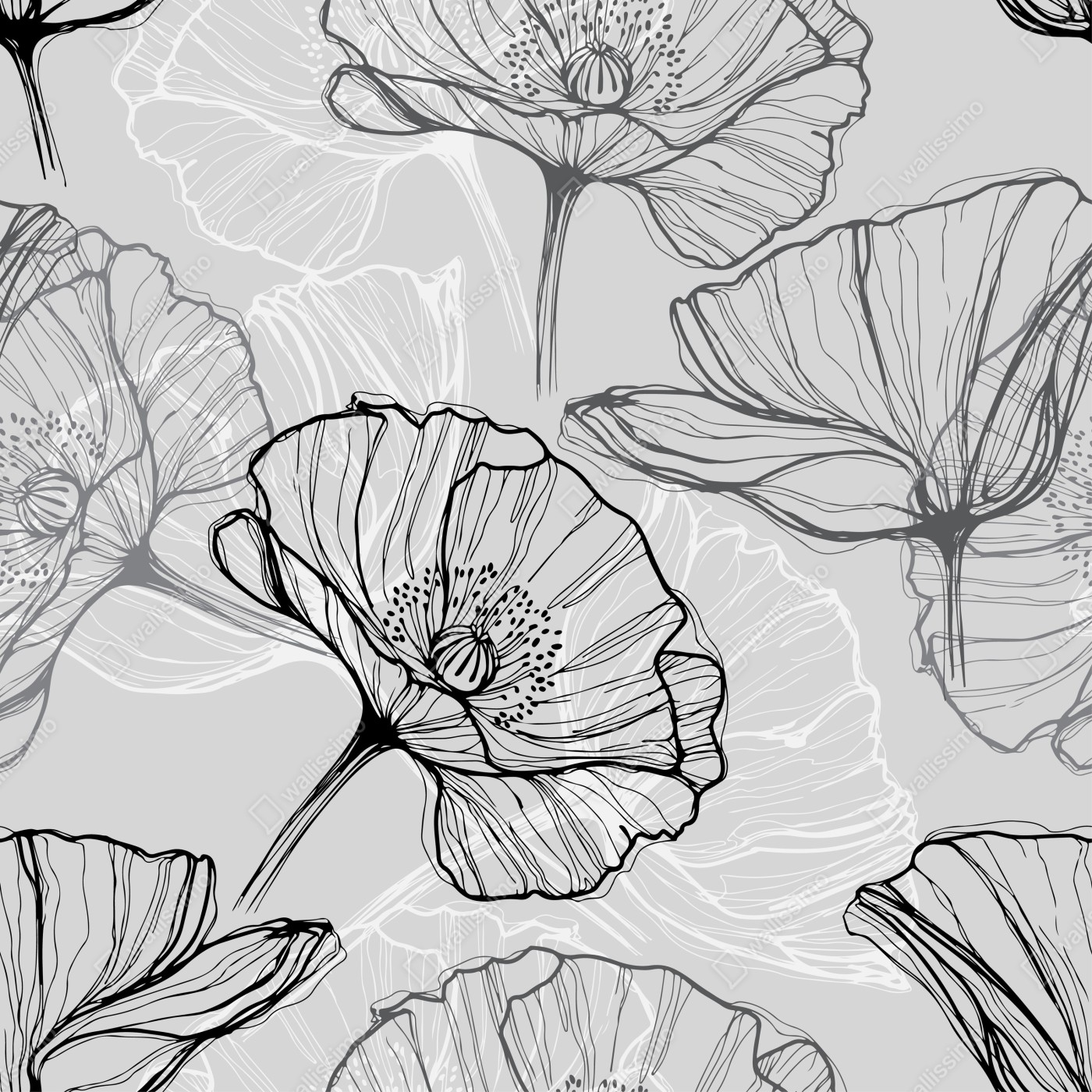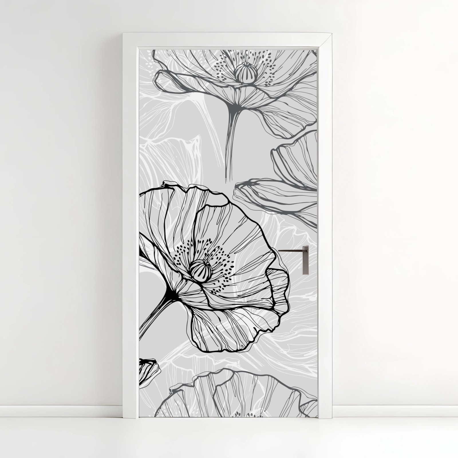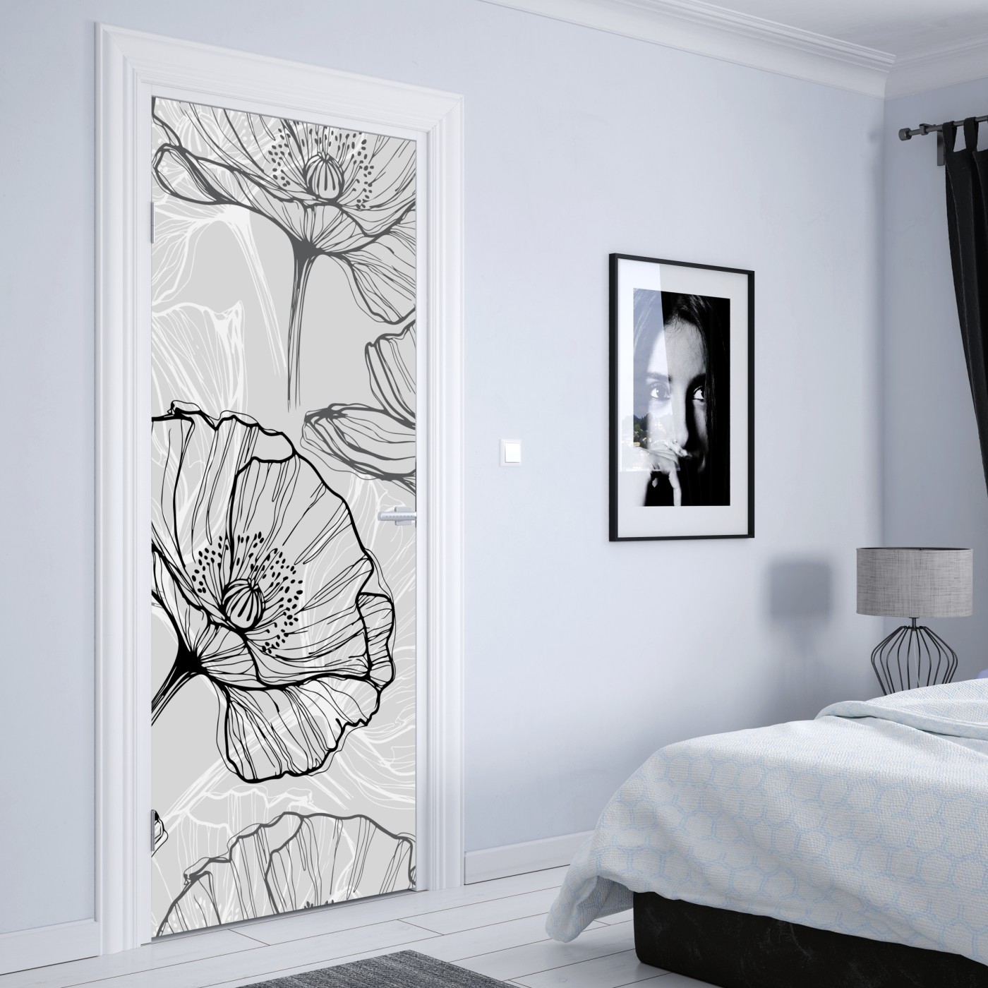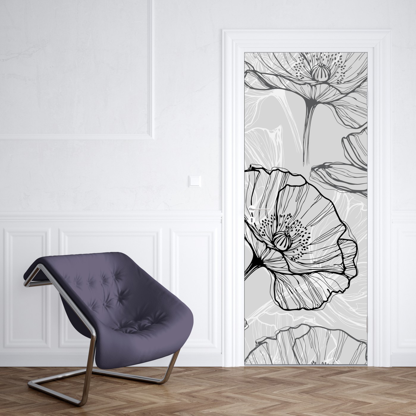 Naklejka na drzwi Delikatny szary mak w rysunku liniowym