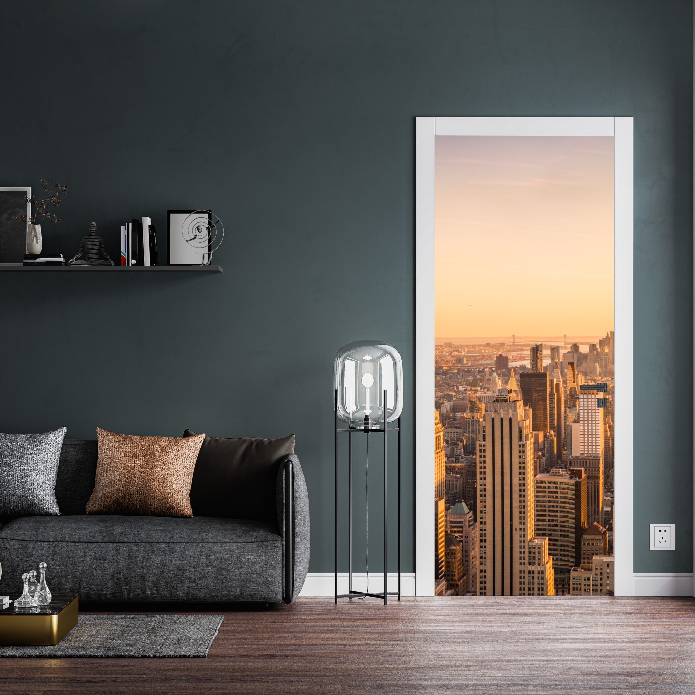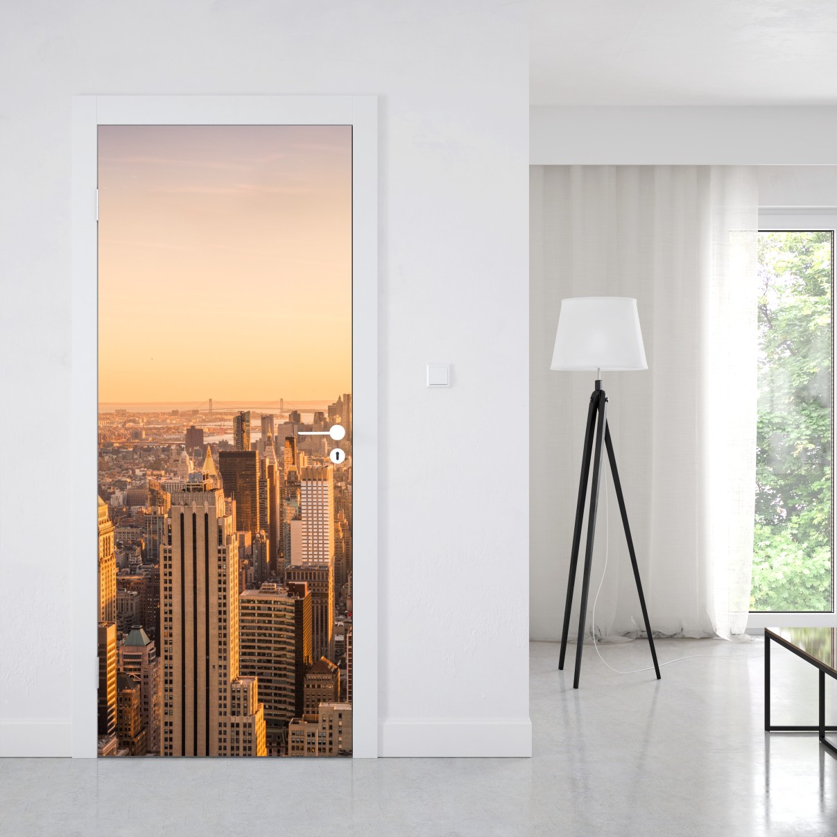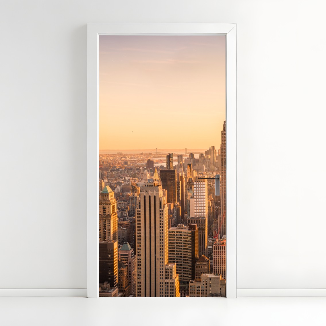 Naklejka na drzwi Złoty zachód nad panoramą Nowego Jorku