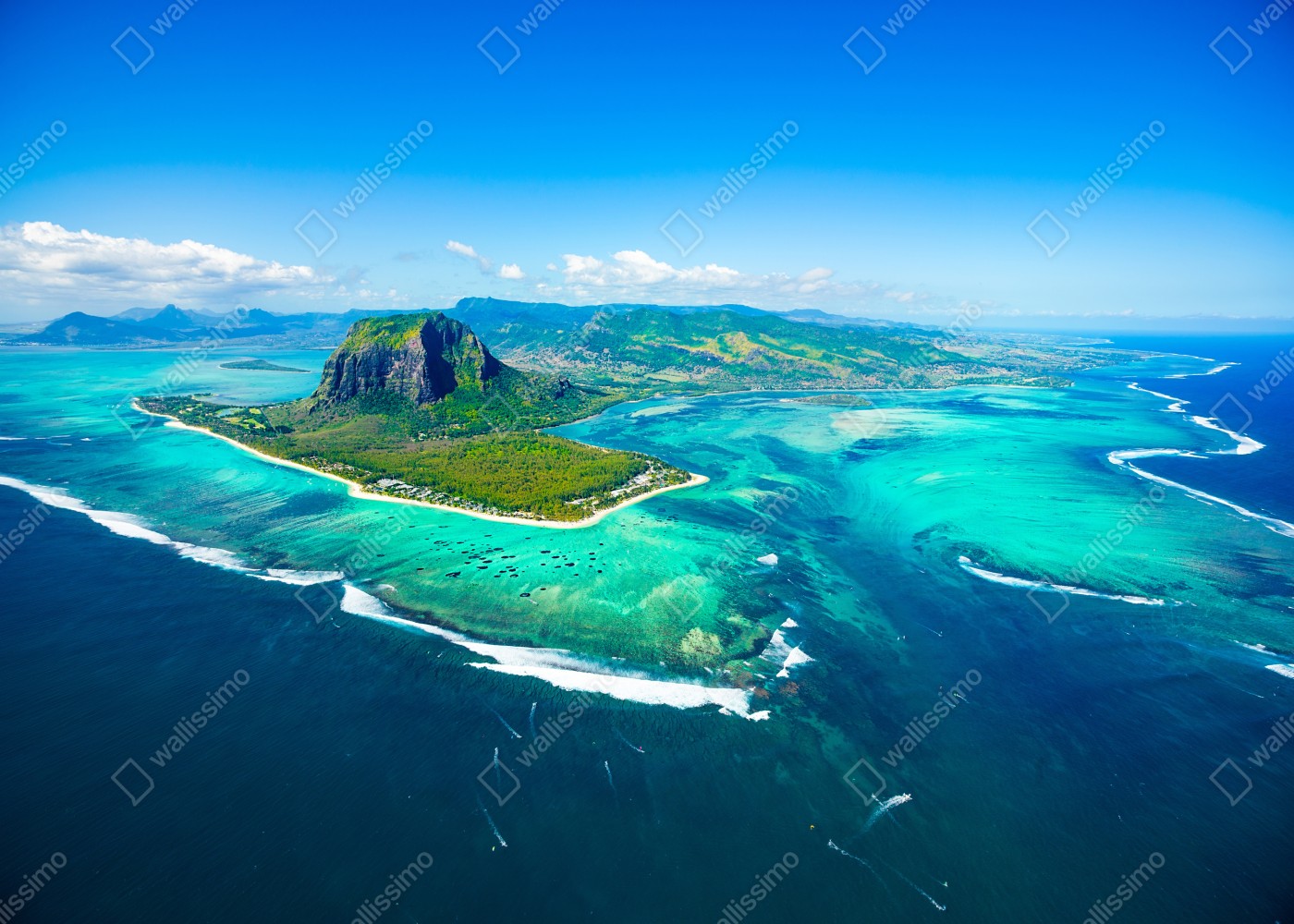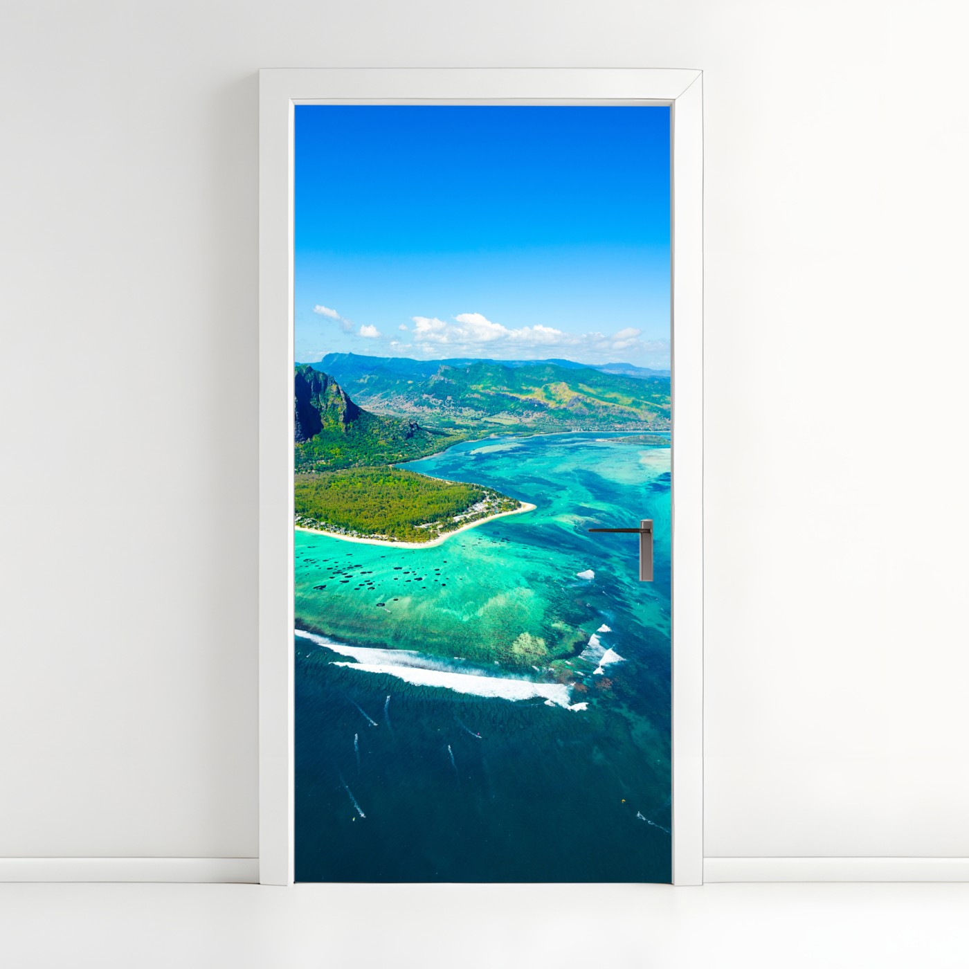 Naklejka na drzwi Le Morne turkusowa laguna panorama