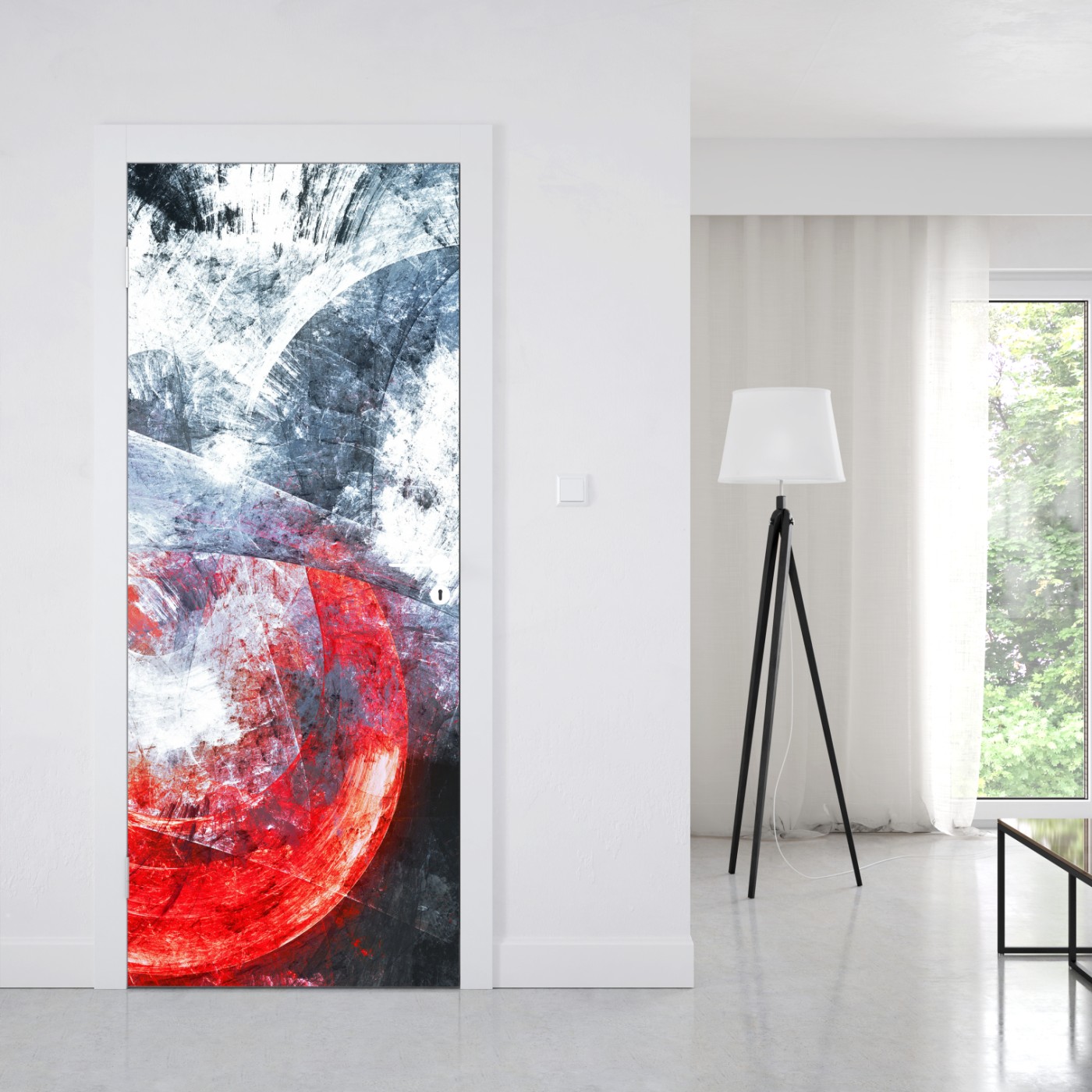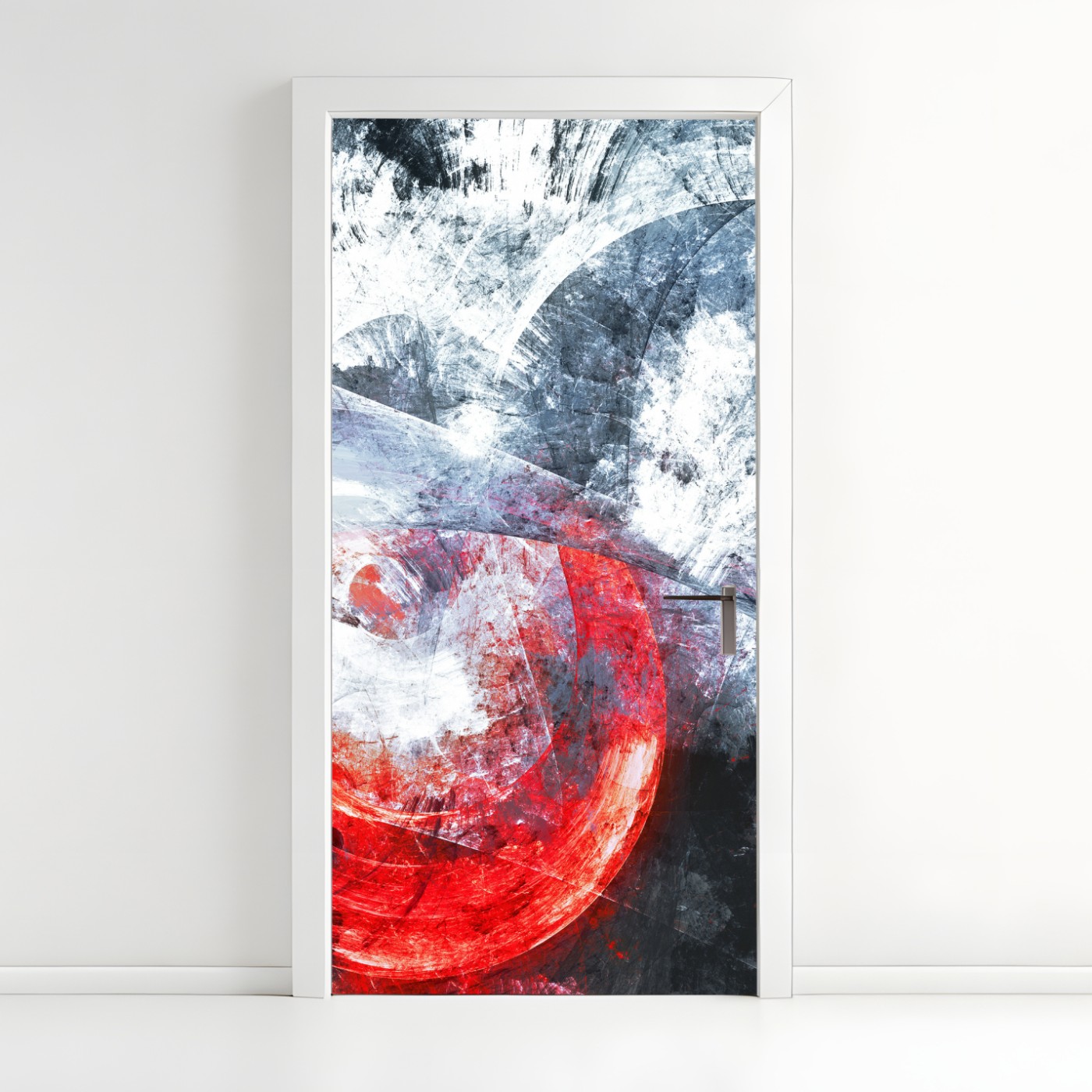 Naklejka na drzwi Dynamiczna czerwona i biała abstrakcyjna kompozycja