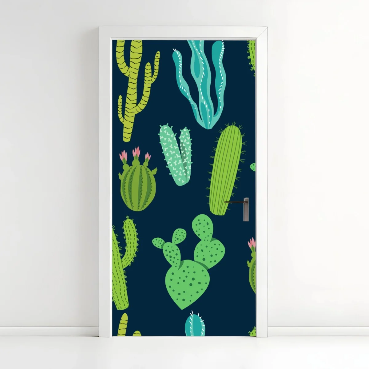 Naklejka na drzwi Wzór z kaktusami i sukulentami