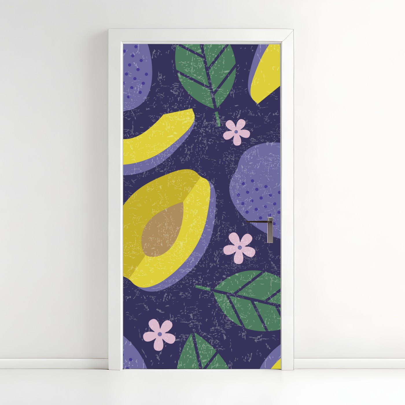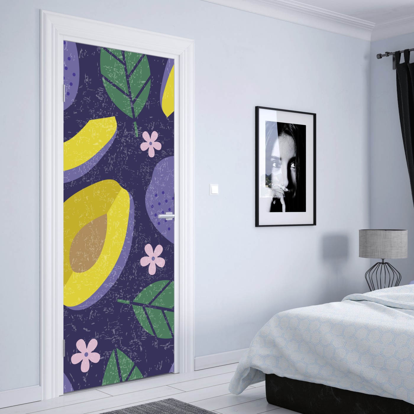 Naklejka na drzwi Radosny wzór ze śliwkami i liśćmi