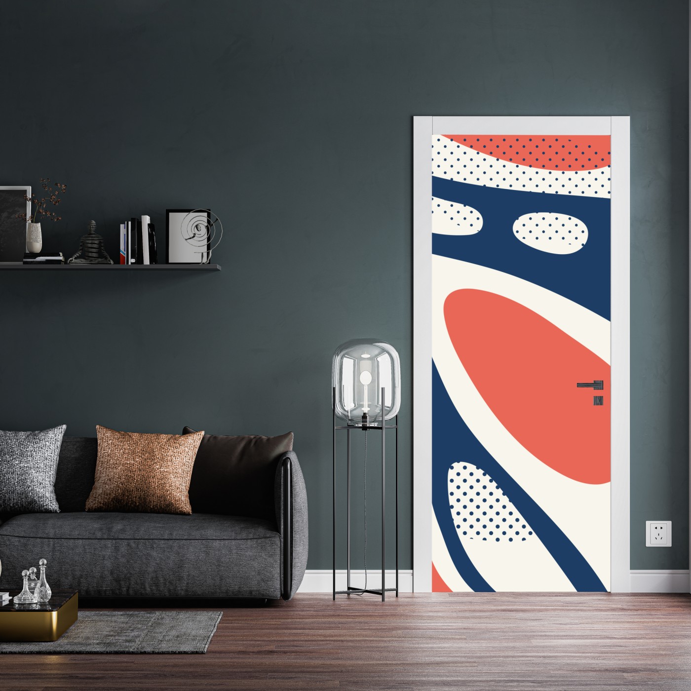 Naklejka na drzwi Retro koralowo-granatowy abstrakcyjny wzór