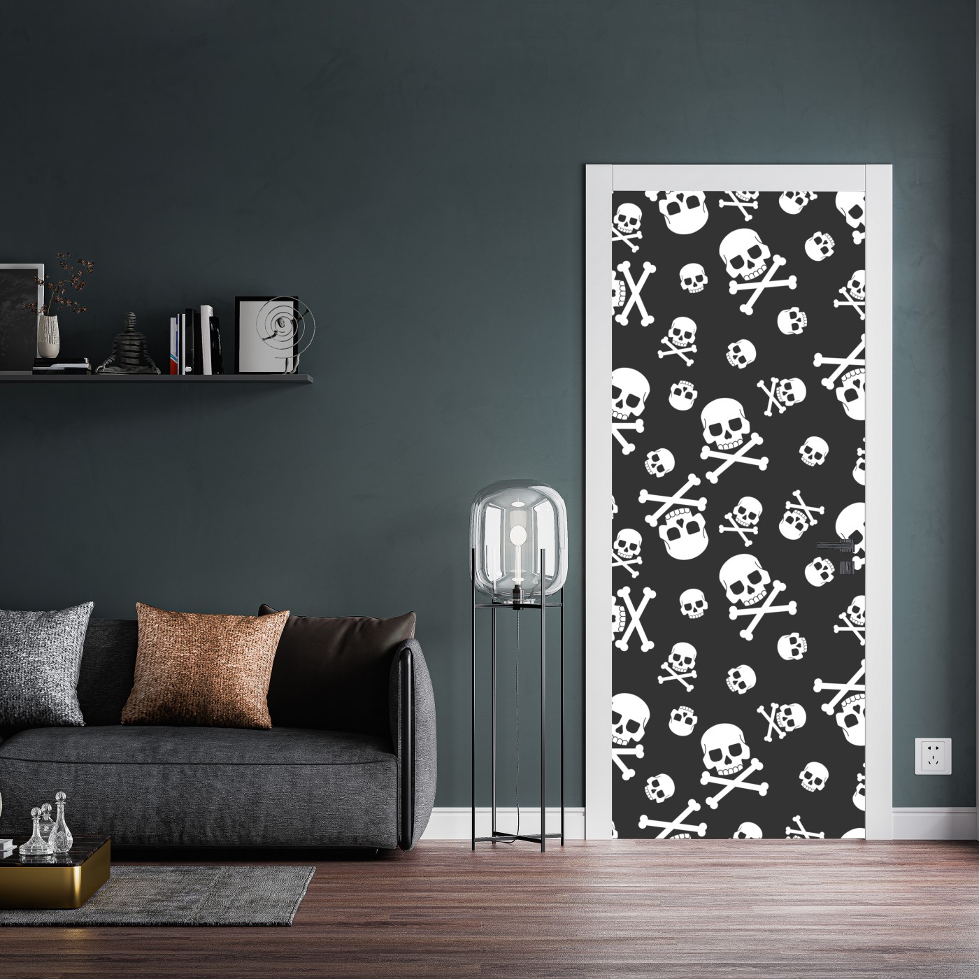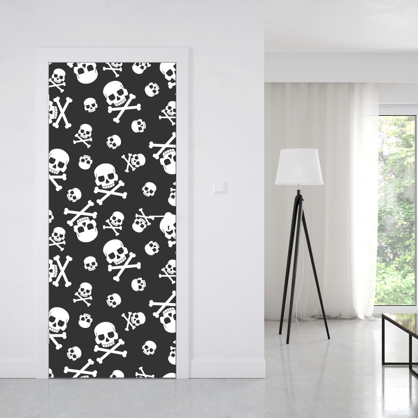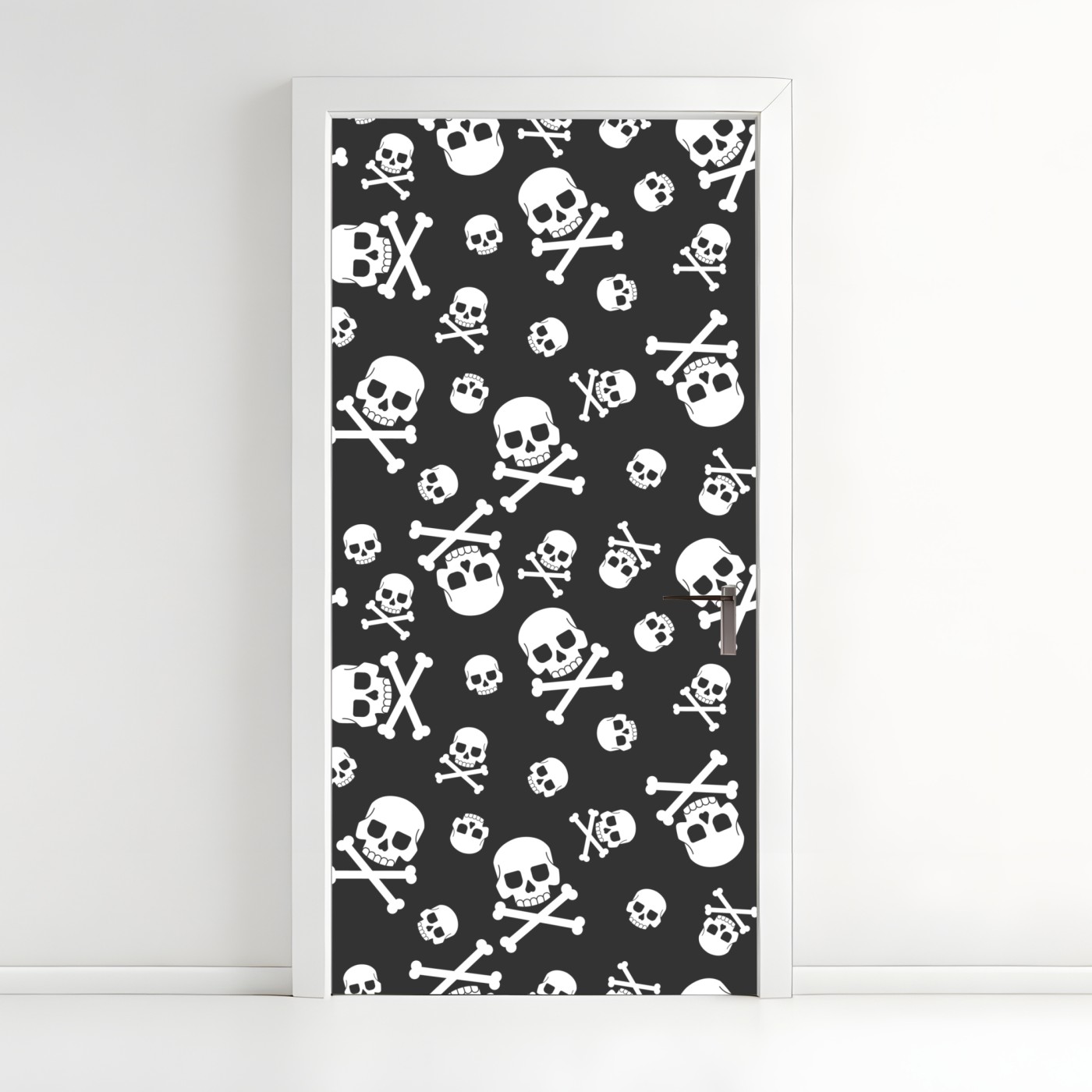 Naklejka na drzwi Biały wzór czaszek na szarym tle