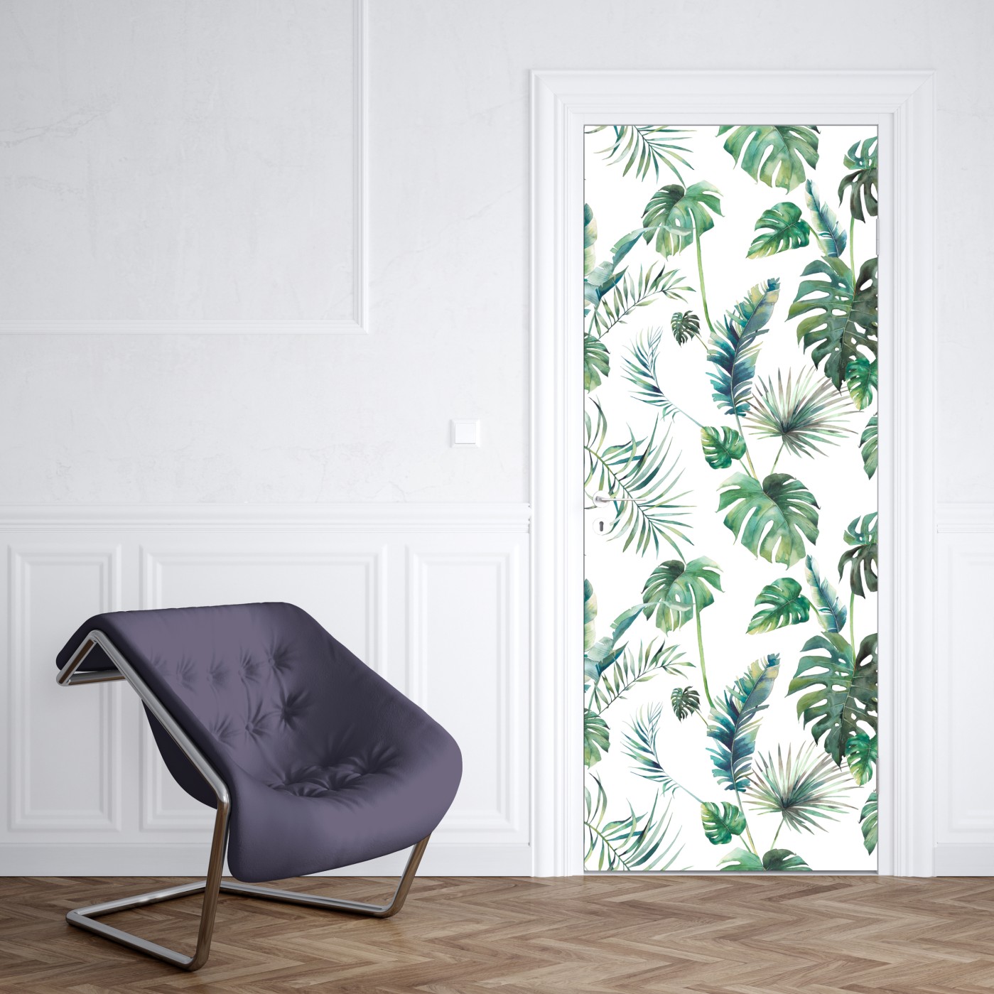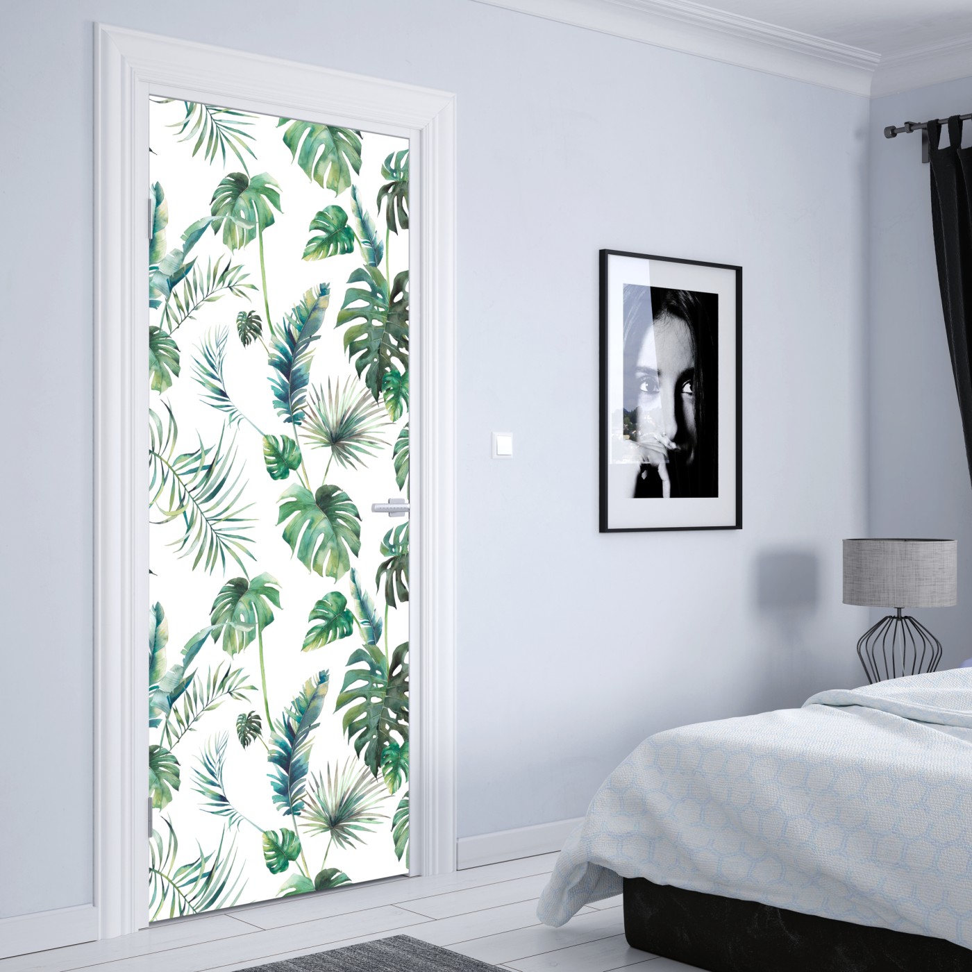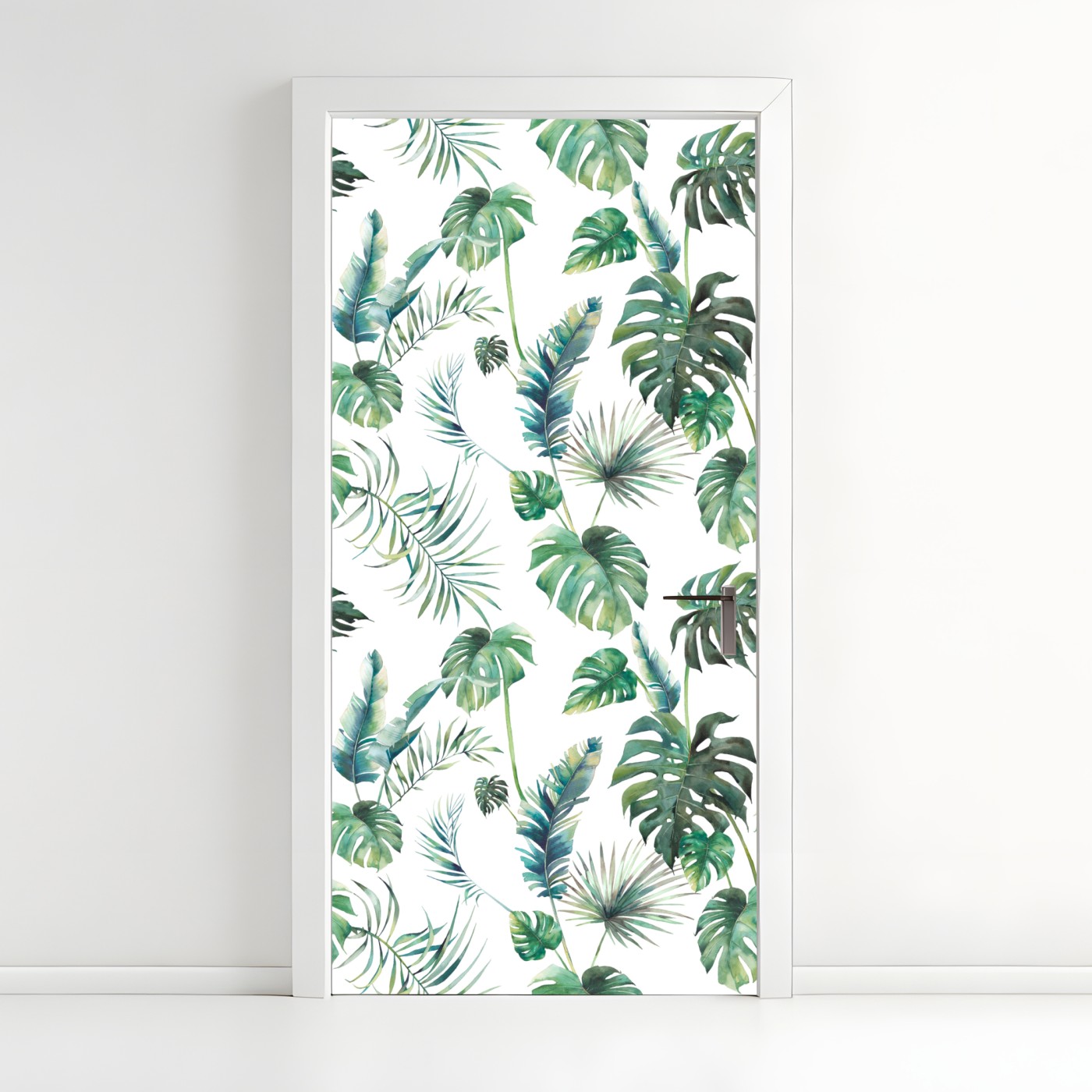 Naklejka na drzwi Akwarelowy wzór tropikalnych liści