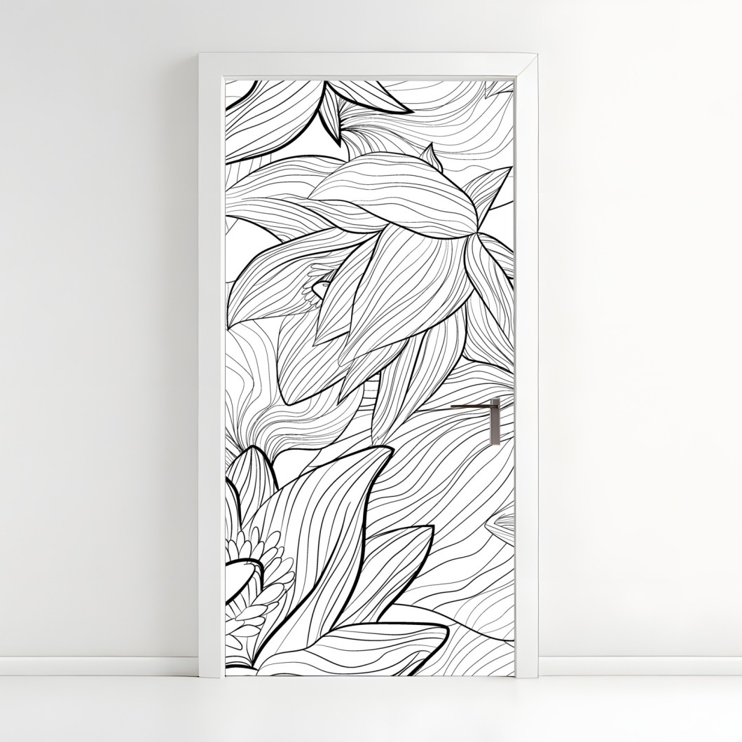 Naklejka na drzwi Delikatny rysunek lotosu w czerni i bieli
