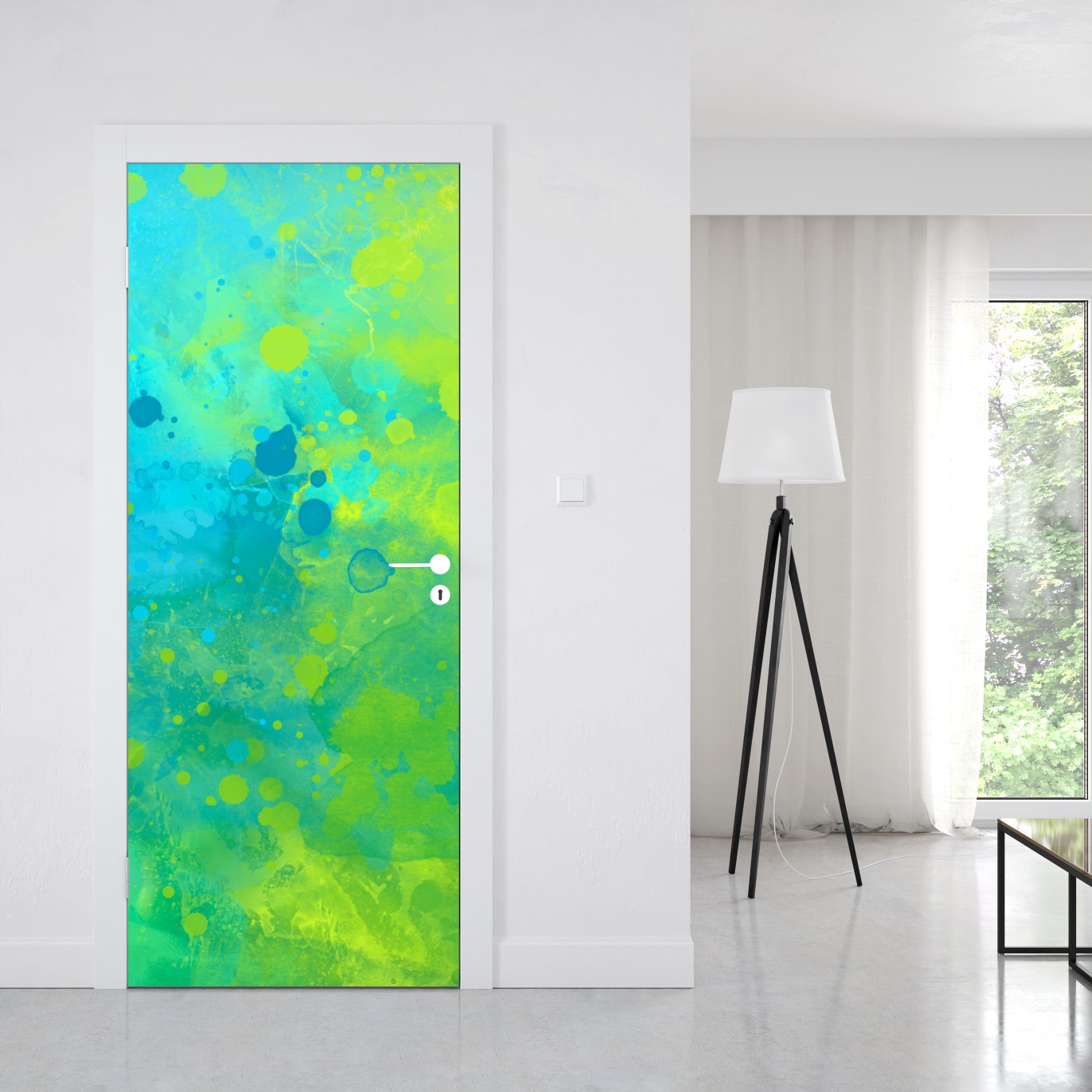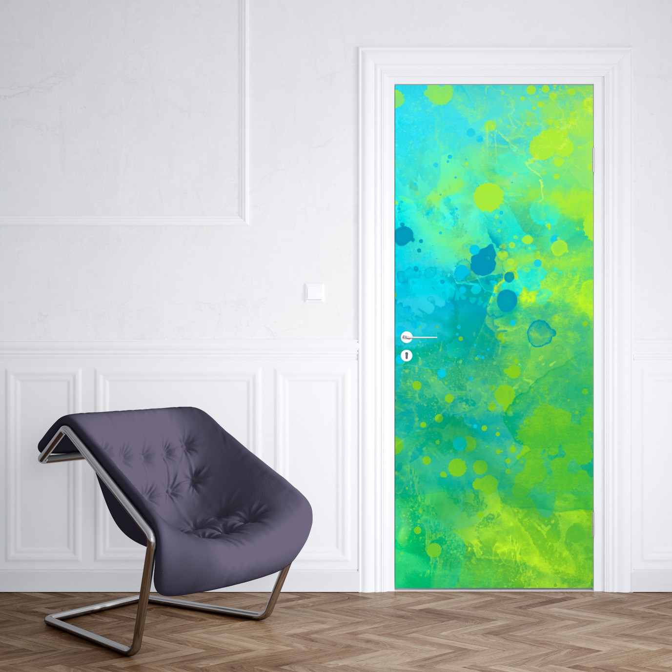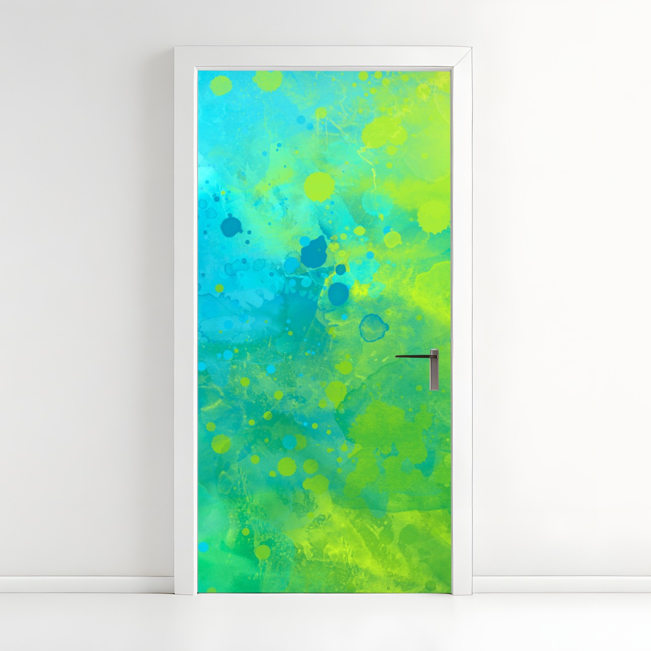 Naklejka na drzwi Intensywna turkusowa akwarela z akcentem limonkowym